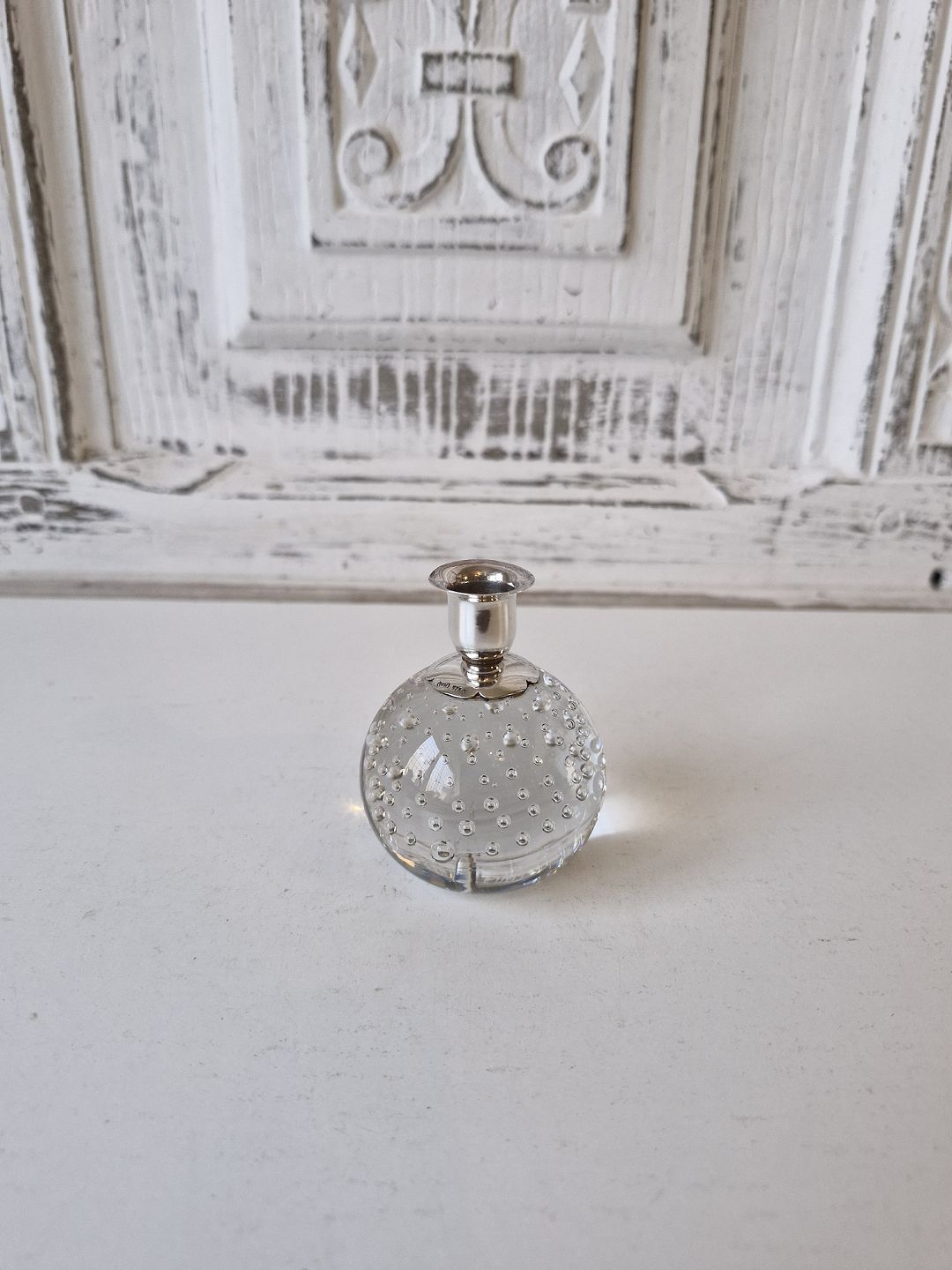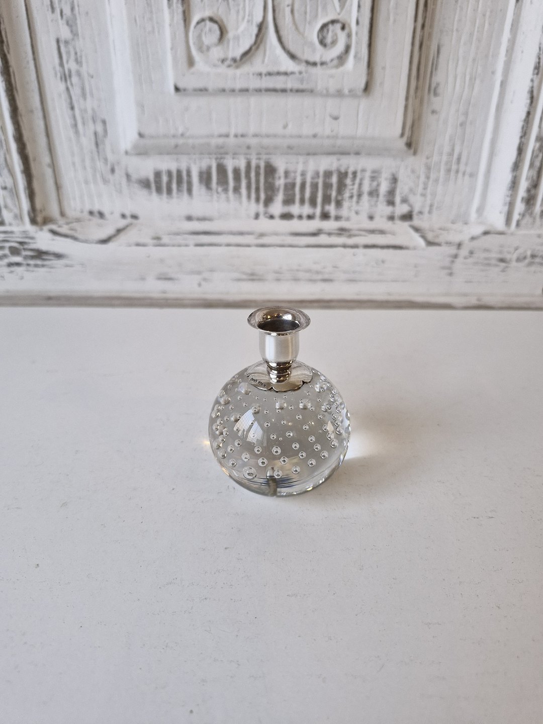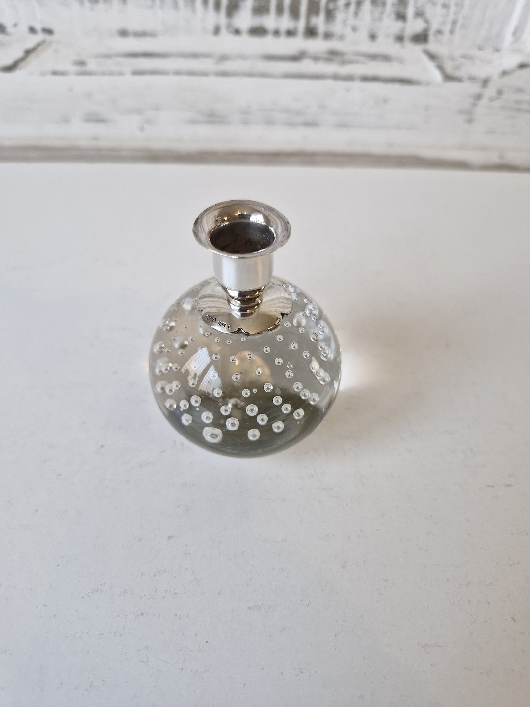 Ball-shaped glass candlestick with sterling silver candle holder.Stamped DGH - 925s.
