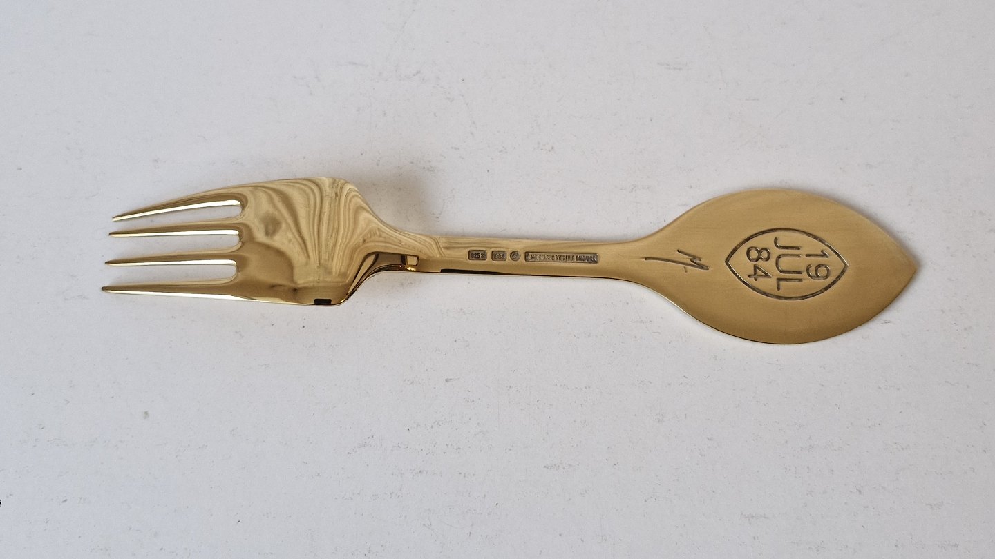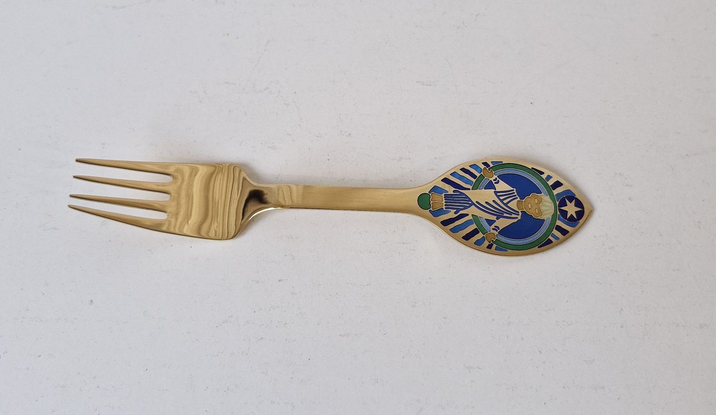 A.Michelsen Christmas fork in gold-plated sterling silver and enamel from 1984Stamp: A.Michelsen - Sterling - Denmark