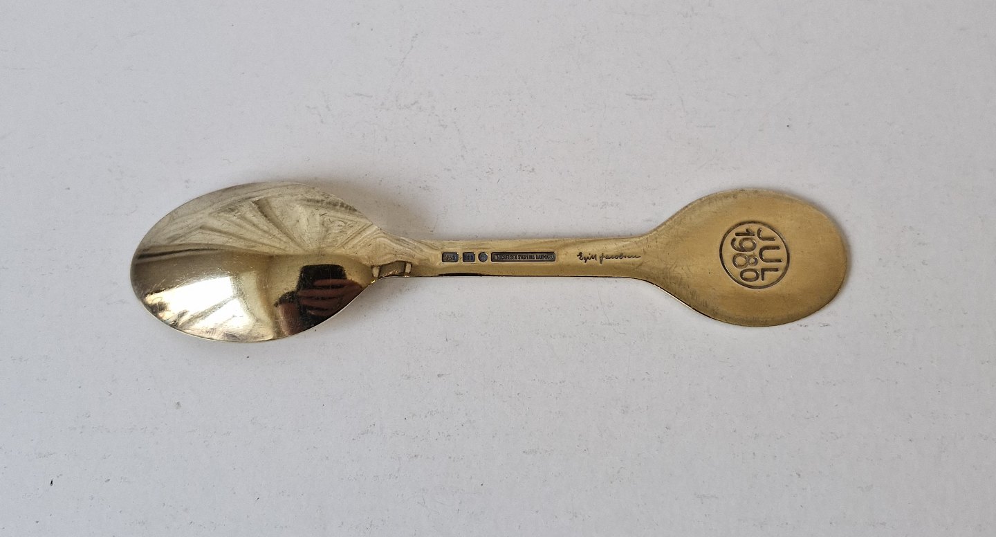 A.Michelsen Christmas spoon in gold-plated sterling silver with enamel 1980Stamp: A.Michelsen - Sterling - Denmark