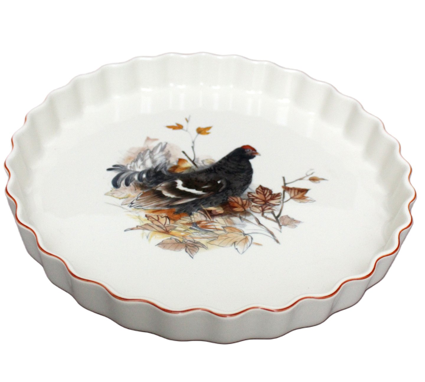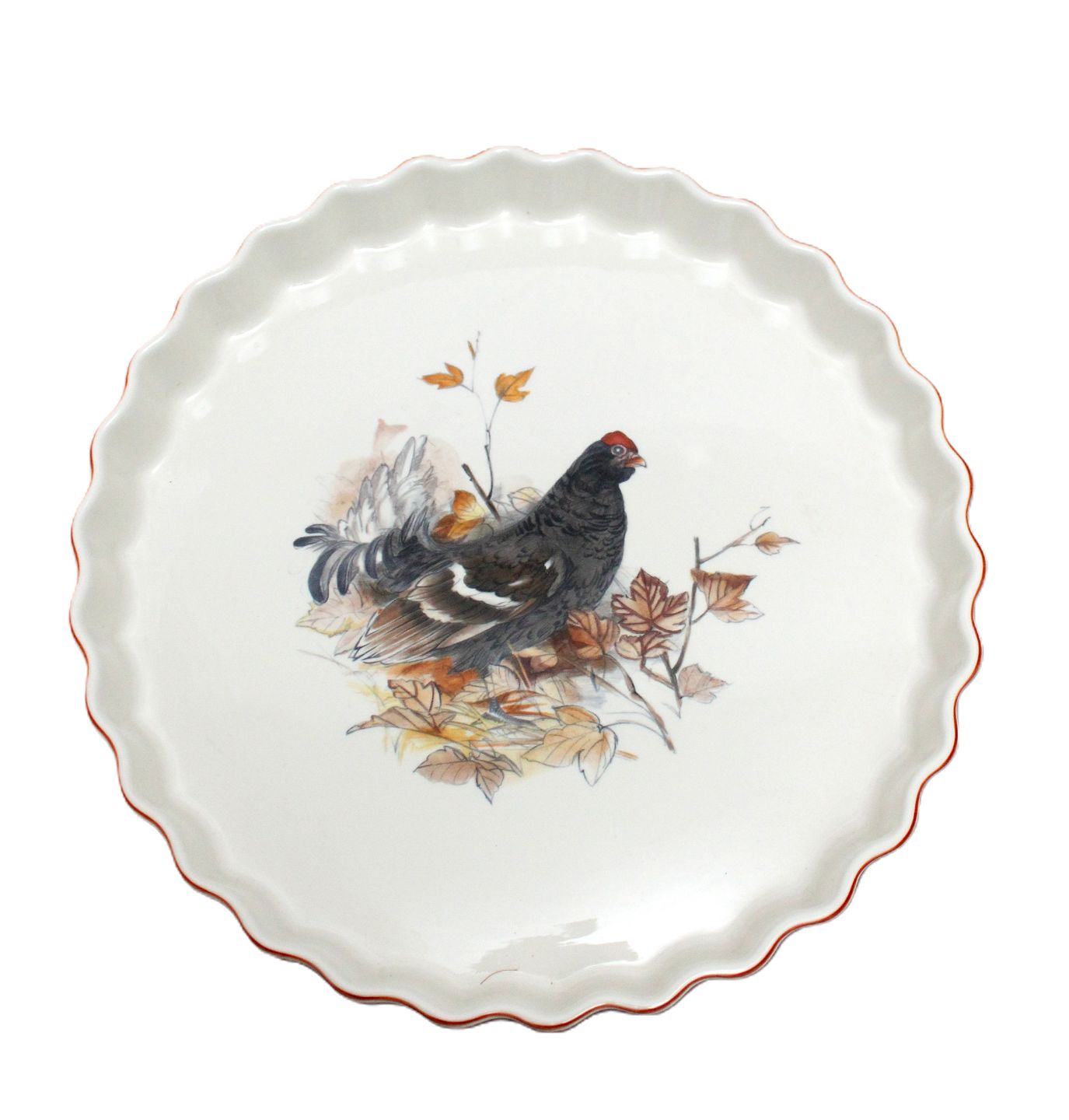 Villeroy & Boch, Jagtstellet designet af Mads Stage for Imerco. Stort Tærtefad med Urfugl. Fadet har en mere cremet farve end resten af Mads Stage stellet og er produceret af Villeroy & Boch. Fadet er ovnfast, tåler microovn og opvaskemaskine. Diameter 30 cm. Højde 4 cm. Flot ubrugt stand. Pris: 750 kr. Lager: 1 Dealer