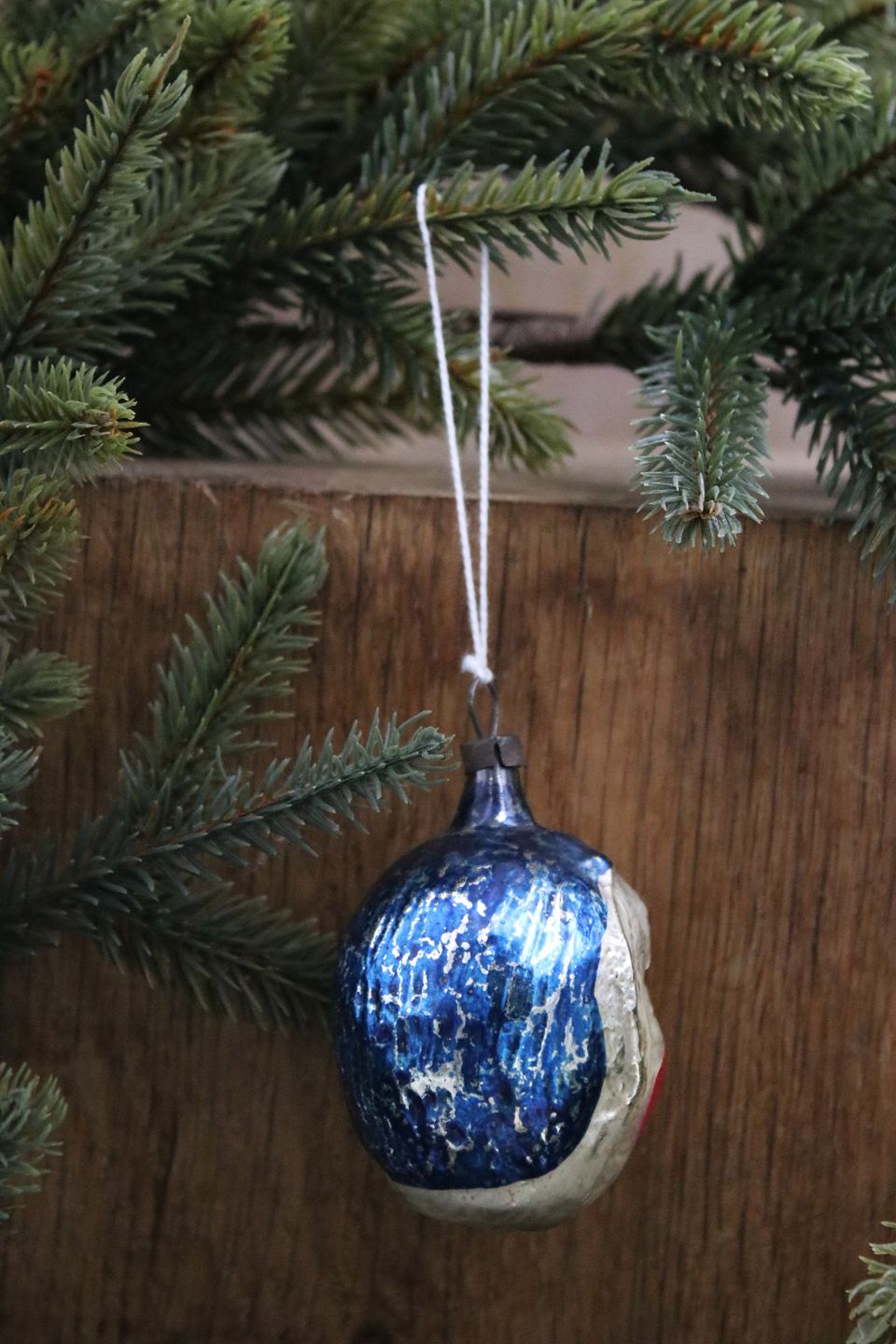 Old Christmas tree ornament in the shape of a clown's head in painted glass from 1930. H: 6cm.Item number: Jul nr. 642
