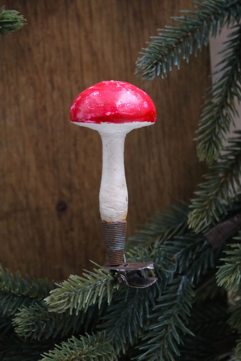 Old Christmas tree ornament in the shape of a toad hat in cotton/paper with clip. H: 8cm.Item number: Jul nr. 647