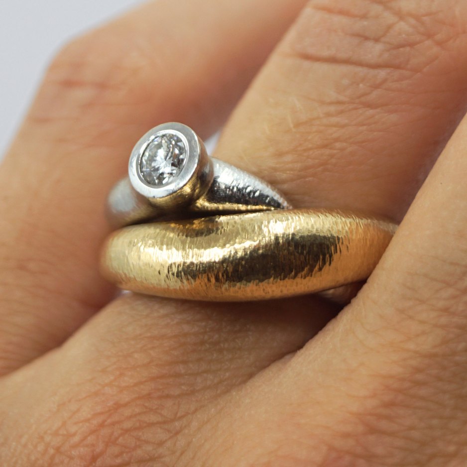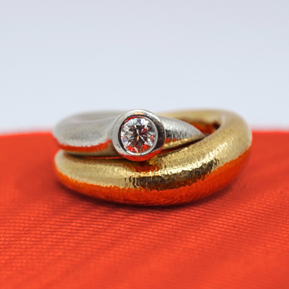 Ole Lynggaard; "Fidelity" ring of 14k gold and white gold, set with a brilliant-cut diamond, 0.30 ct. W VS.Ring size 54.