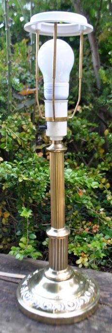 Brass table lamp, 1920 - 1930, Denmark. Base with decorations. Fluted column. Height without electrical installation: 31 cm. With installation: 50 cm.