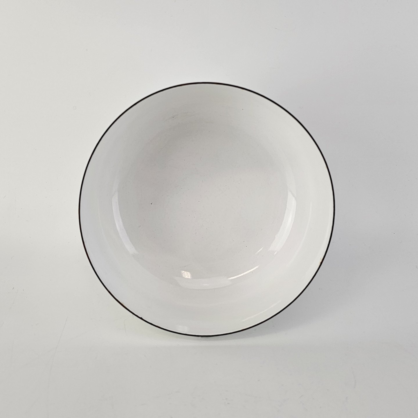 Arabia Finel hvid skål med sort kant i emaljeFormgiver Kaj Franck