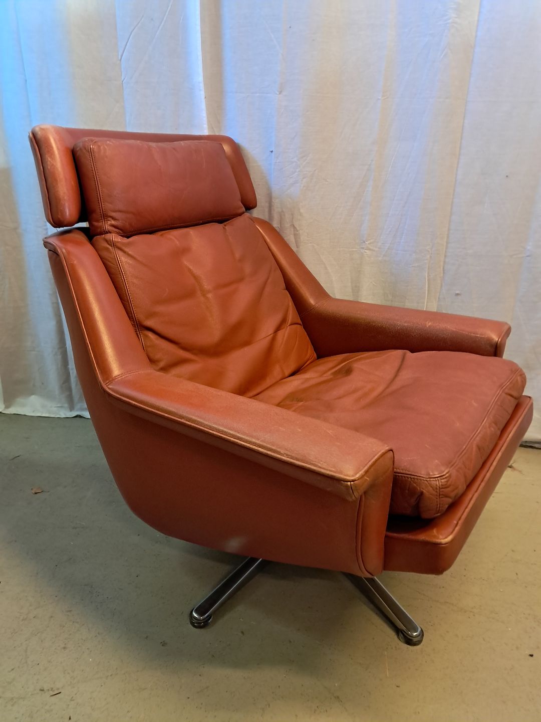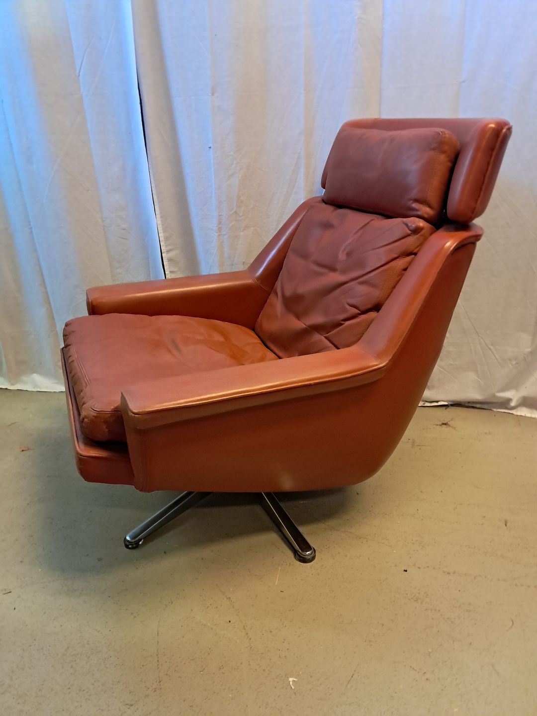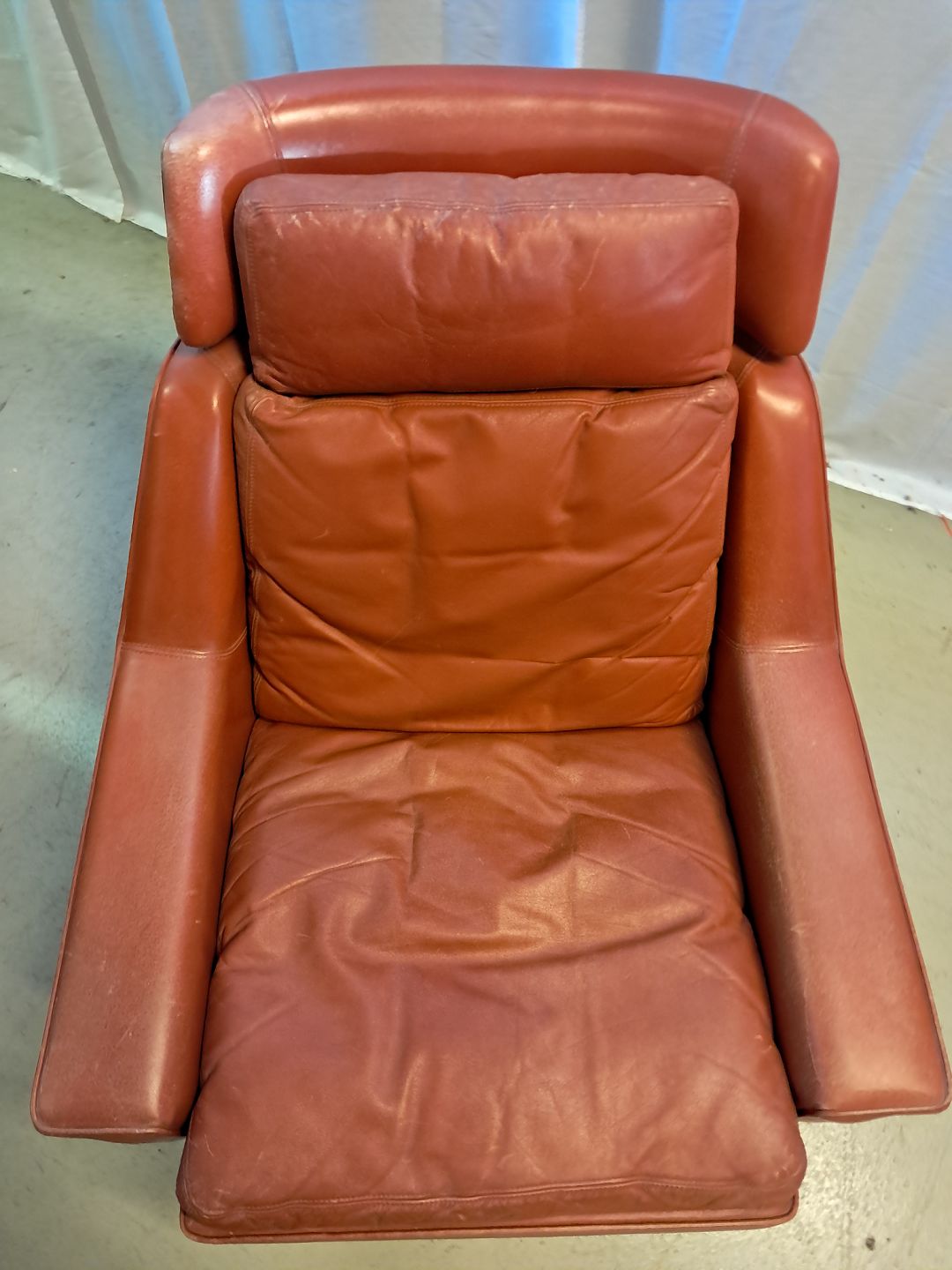 Lænestol i læder, fra 1980erne.Den har brugsspor.