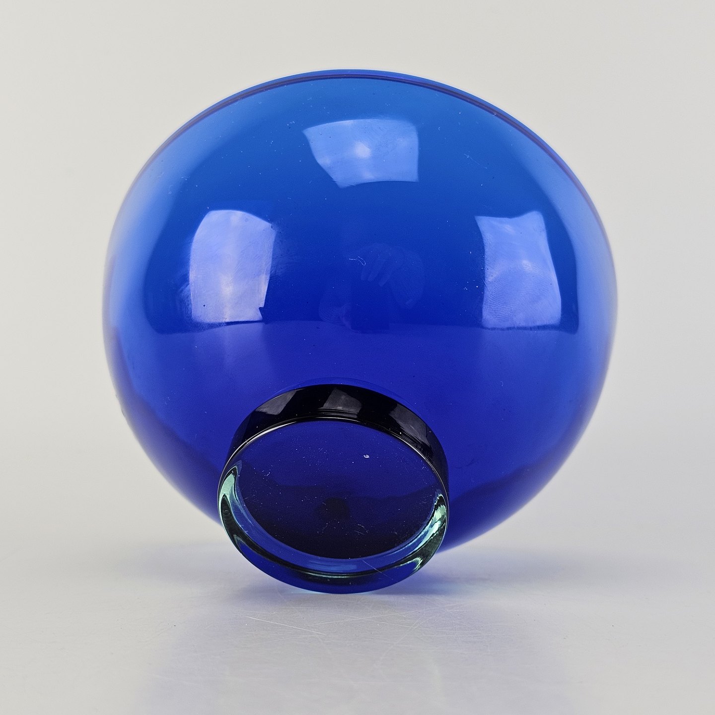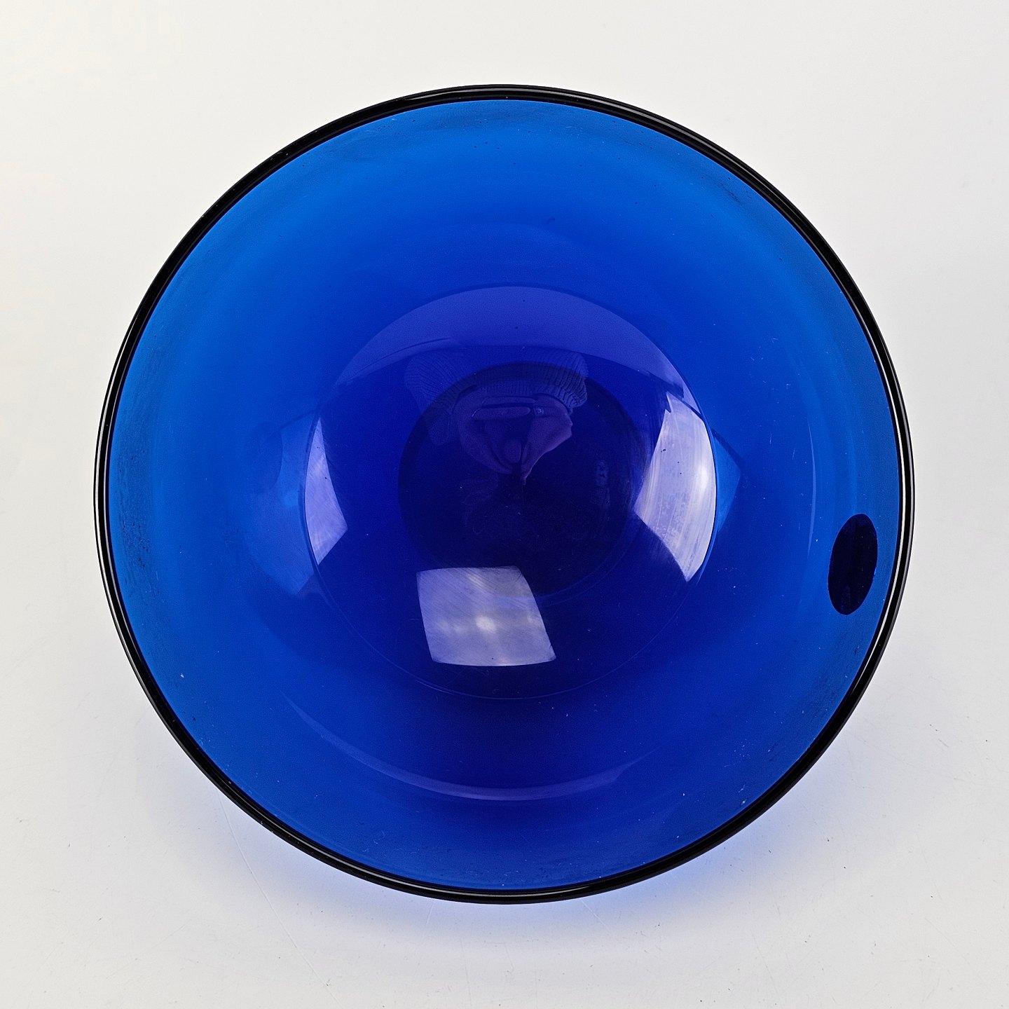 Harlekin skål i gennemsigtigt blåt glas med klart glas i bundenKrystalglas