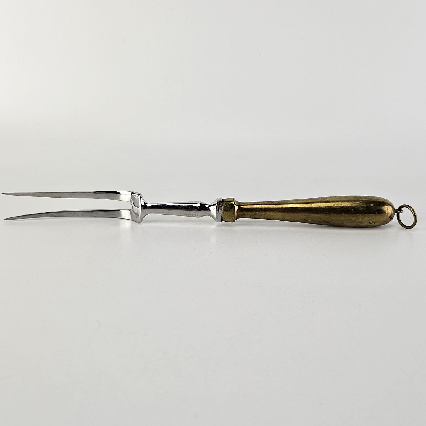 Stegegaffel i rustfrit stål med skaft af messingFormgiver Henning Koppel