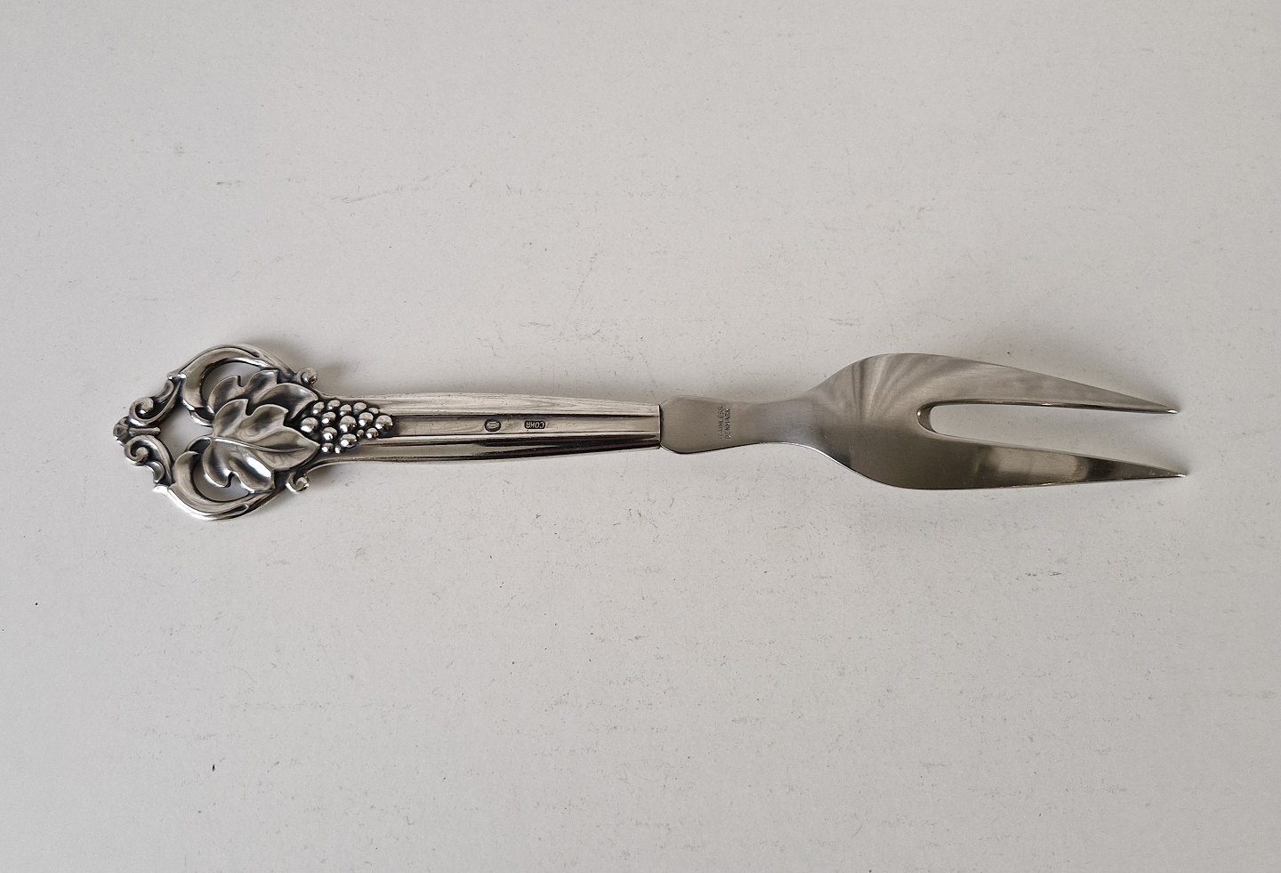 Sering fork in silver and steel decorated with bunch of grapes.Stamp: Cohr - the three towers.