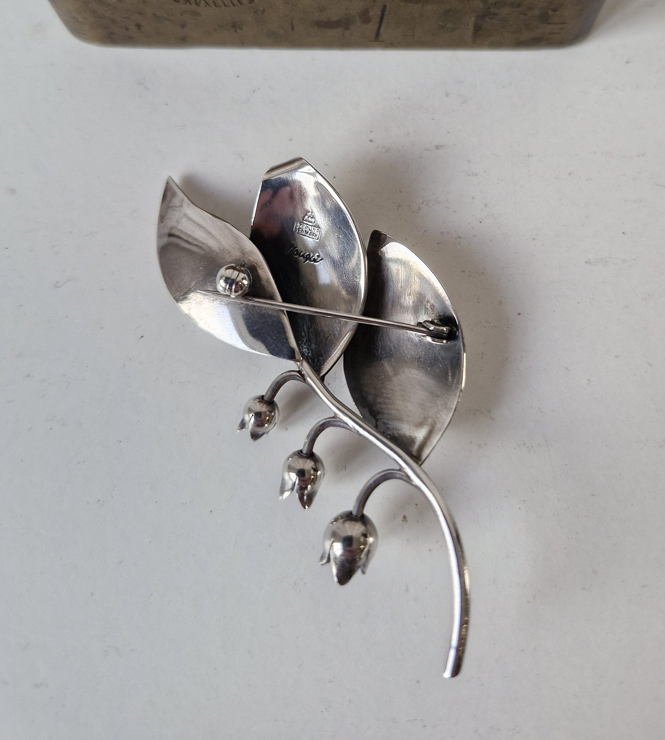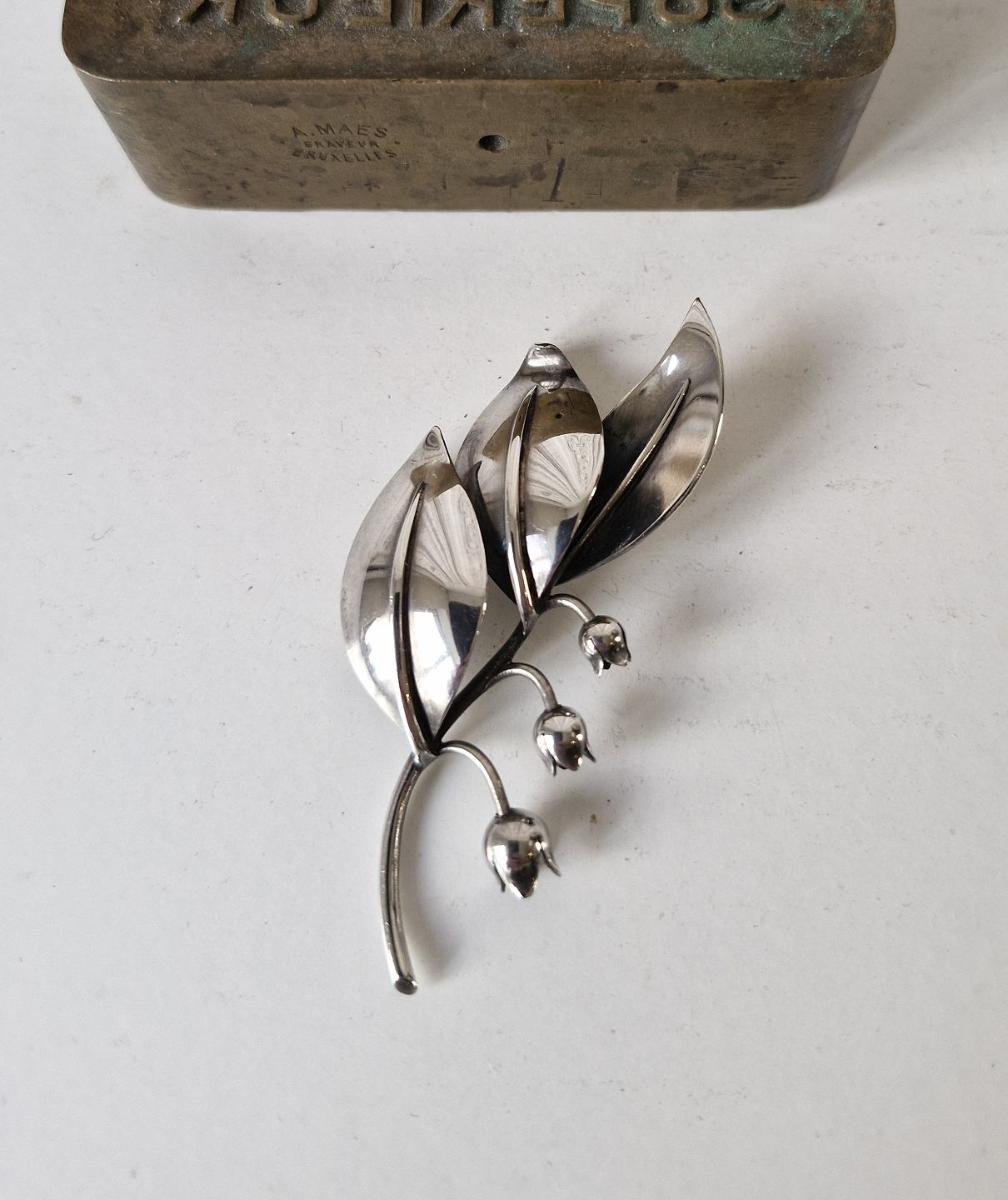 A. Michelsen silver brooch in the shape of a lily of the valley, the three small flowers are movable.Stamp: AM - Sterling - Denmark