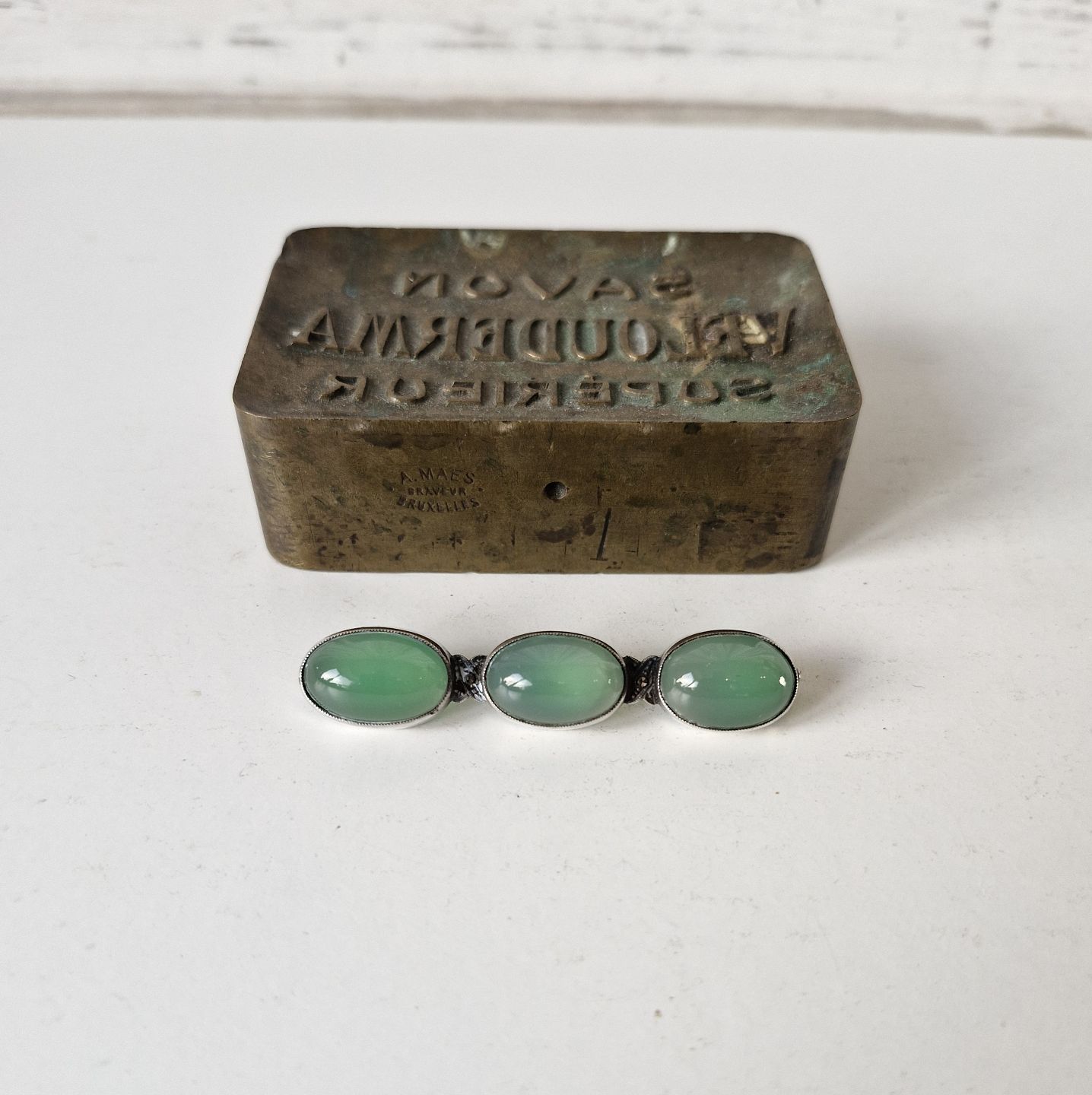 Silver brooch adorned with three cabochon cut agates.Stamped 935.