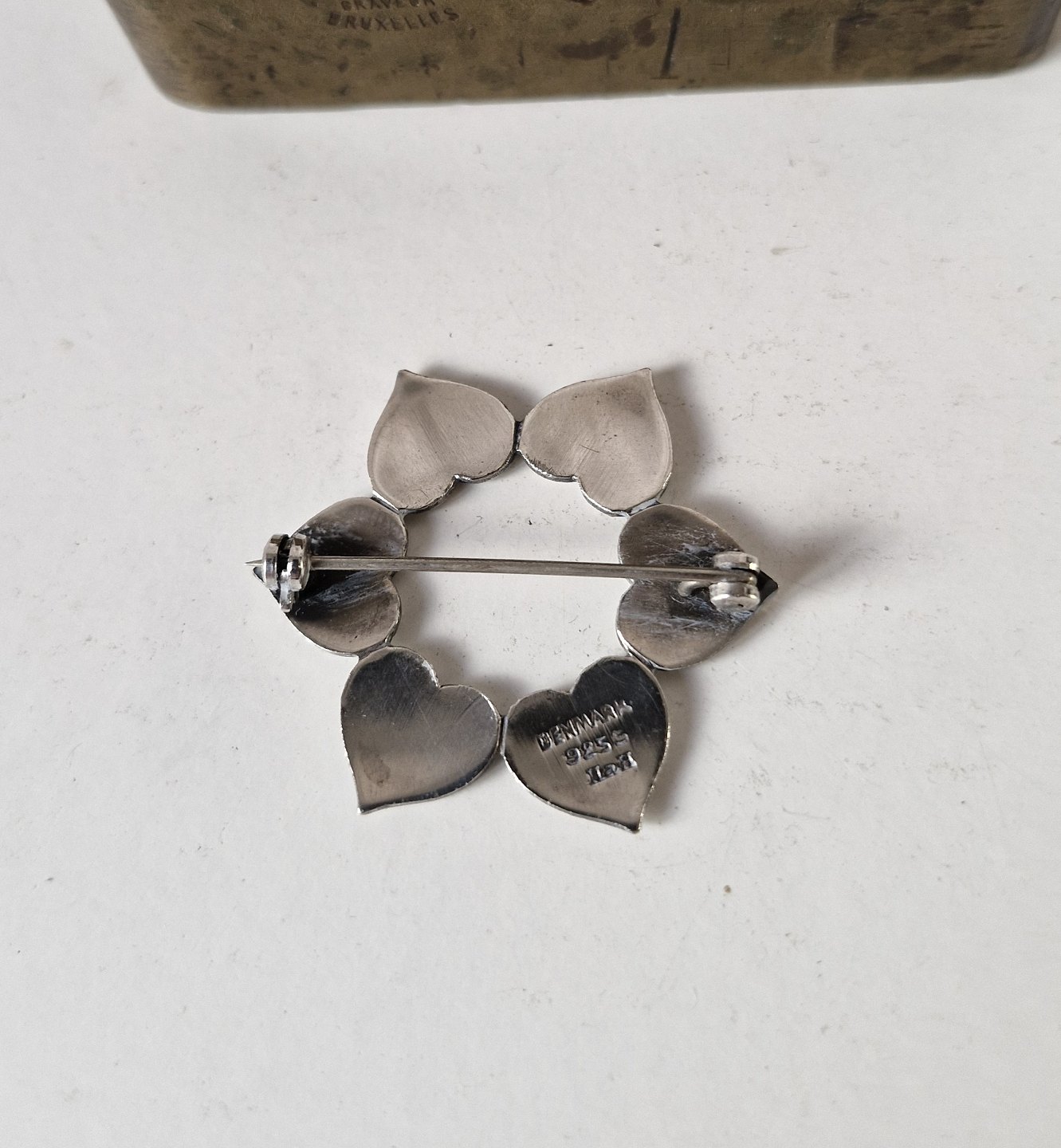 Hans Hansen heart brooch in sterling silver.Stamped: Hans Hansen - Denmark - 925.