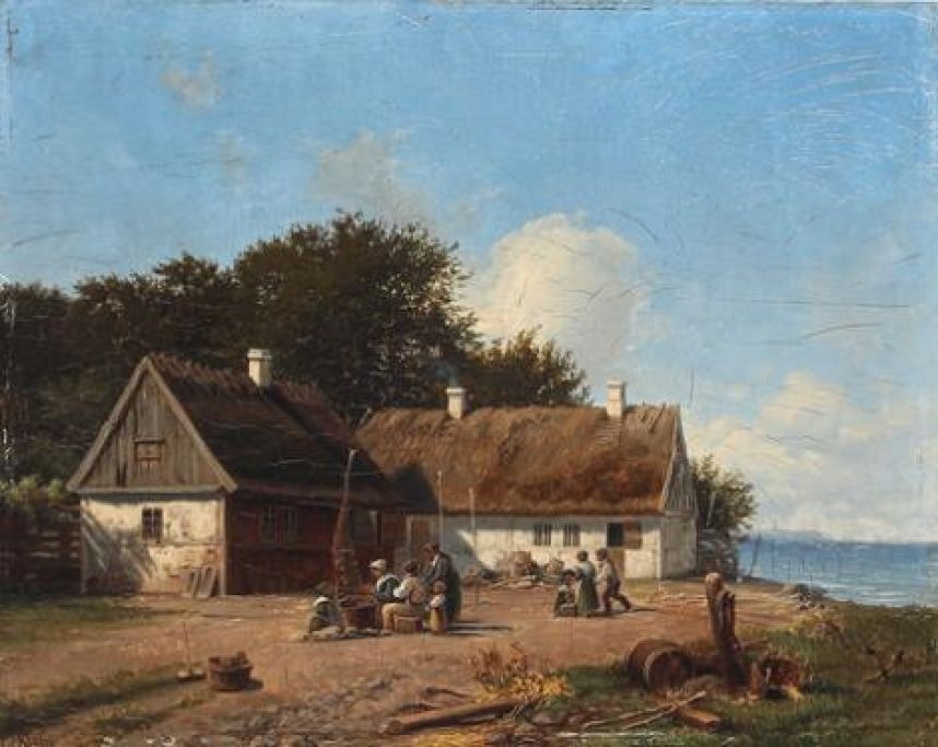 Klein, Peter Gabriel (1824 - 1859) Denmark: Coastal scene with farmhouse. signed P. Klein. Oil on mahogany. 20 x 26 cm.Item number: 28273