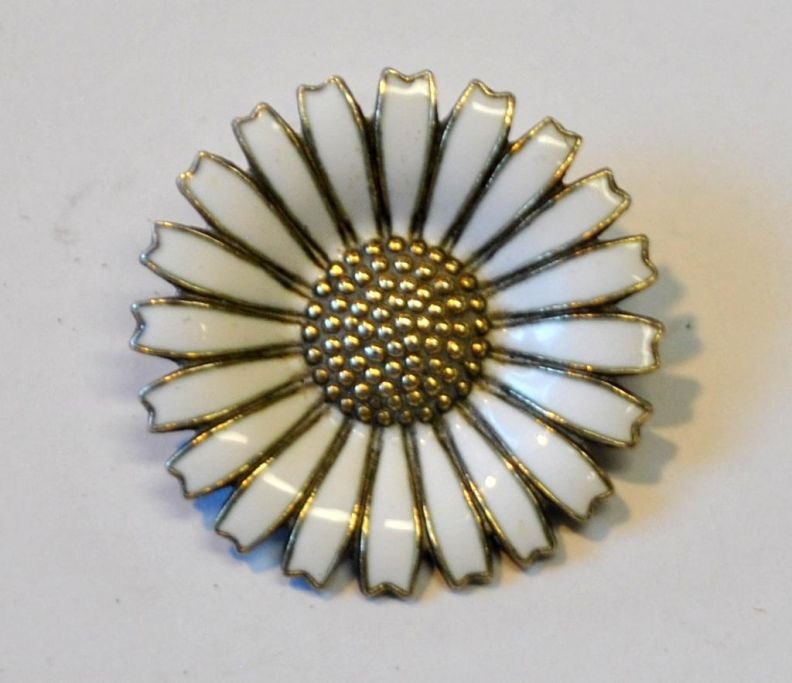 Margeritte brooch, sterling silver, A. Michelsen, 20th century. Copenhagen. Denmark. With enamel. Stamped. Dia. 4.2 cm.Perfect condition!