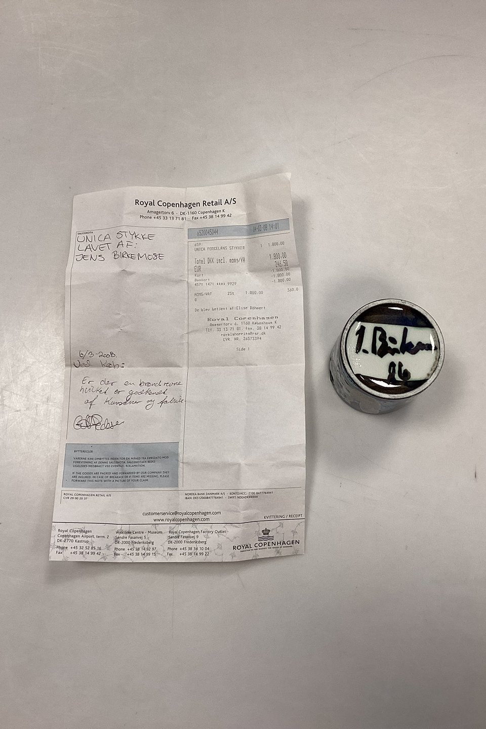 Royal Copenhagen Unika Cup by Jens Birkemose, Form Number 3495Has a burning defect on the side
