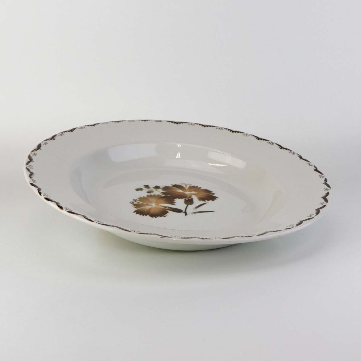 Dyb tallerken i fajance fra stellet Convolvulus Nellike. Formgiver Nils Thorsson, Nic. Tidemand og Oluf Jensen