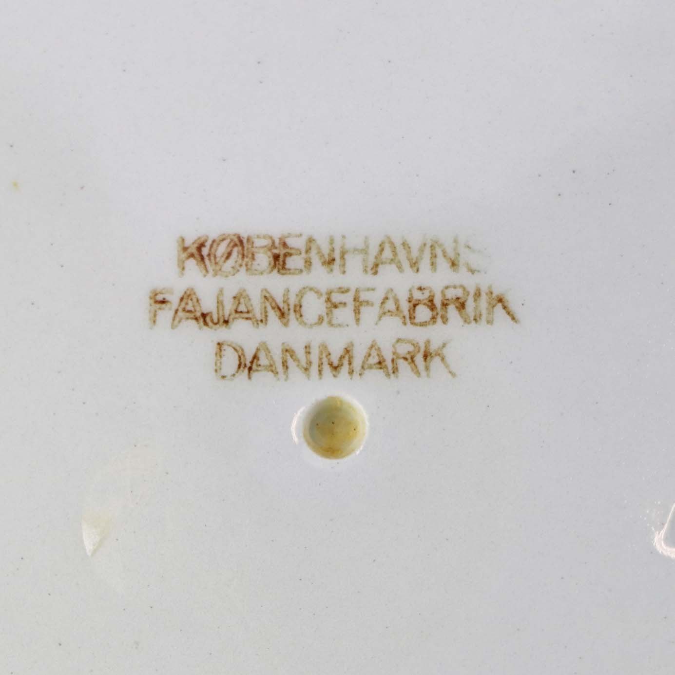 Stel i glat hvid fajance i stelform C med dekoration af brune nelliker og ranker. Stellet blev produceret i perioden år 1930-1941