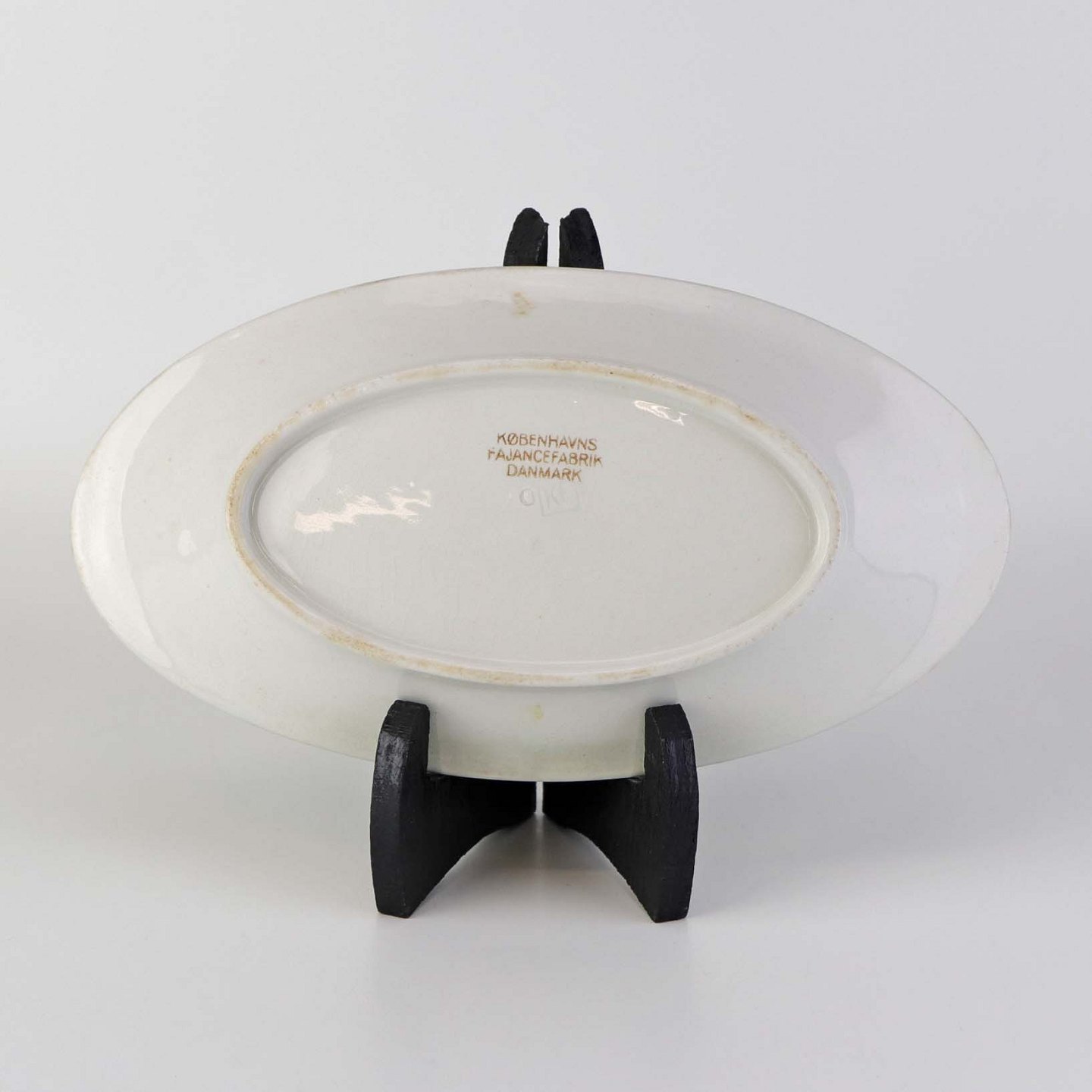 Lille ovalt fad i fajance fra stellet Convolvulus Snerle. Formgiver Nils Thorsson, Nic. Tidemand og Oluf Jensen