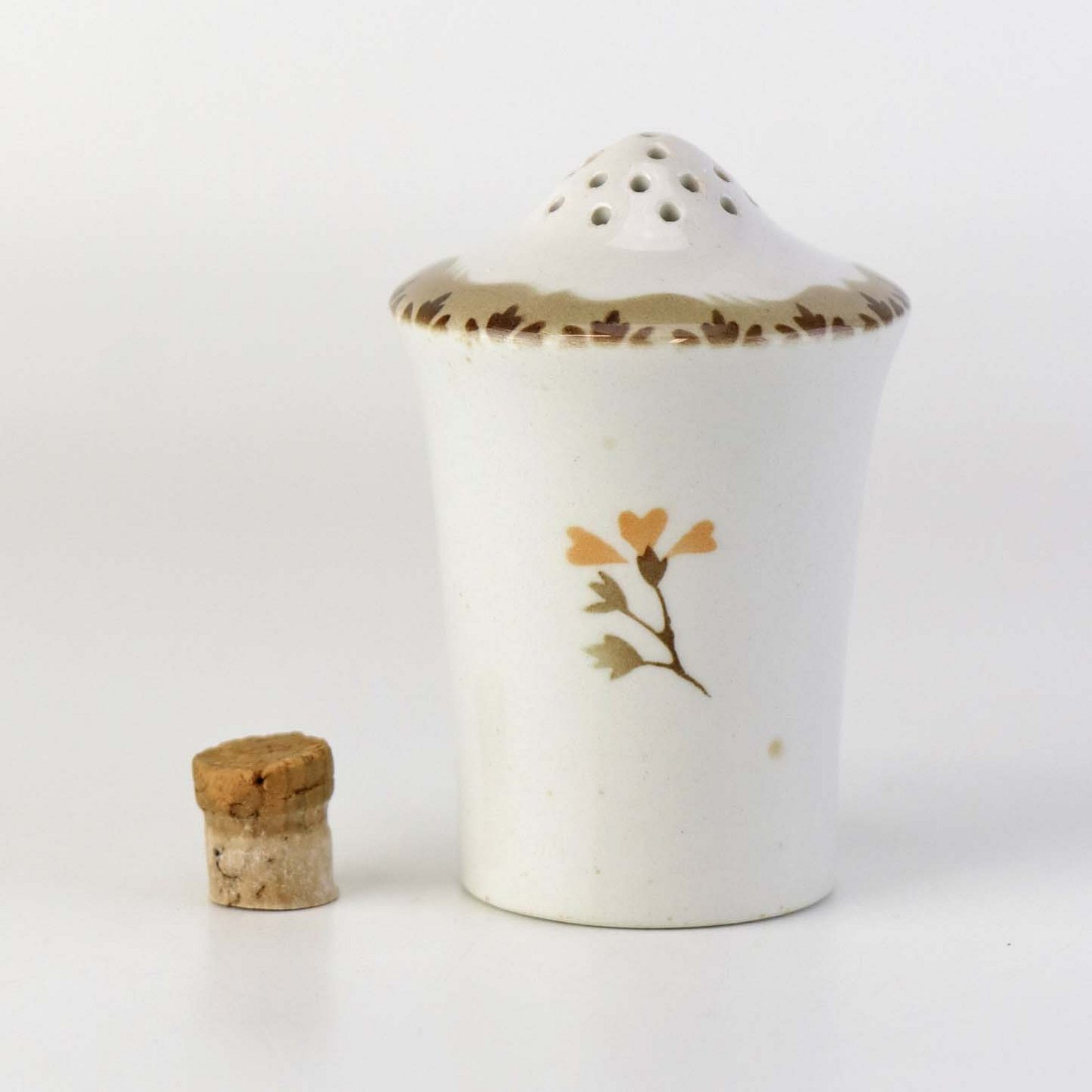 Salt strø i fajance med korkprop fra stellet Convolvulus Snerle.Formgiver Nils Thorsson, Nic. Tidemand og Oluf Jensen