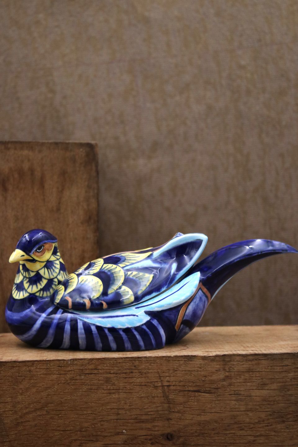 Blue Pheasant, hand painted Bonbonniere from Royal Copenhagen. Decoration number: 1737/180 - Lid. 1737/179. 1.sort.H:8.5cm. L:24cm. W:9cm. Is in whole and in fine condition.