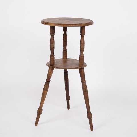 Antique pine side/flower table from the 1880s. Two-tier with turned legs.— Period: 1880s