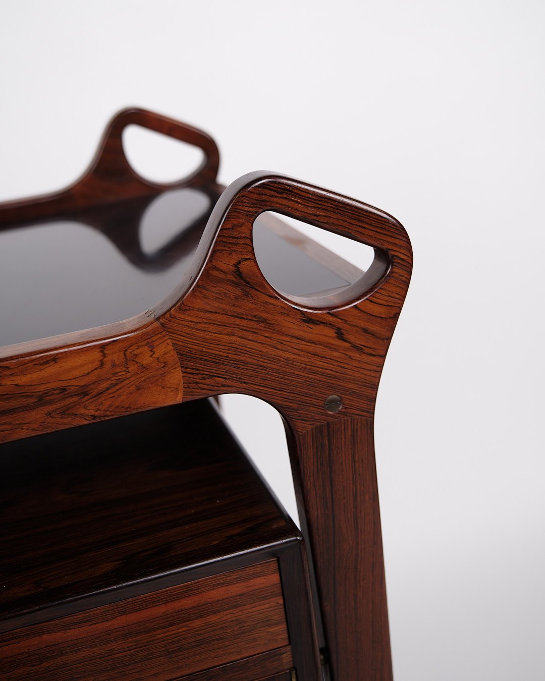 — Materials: Rosewood, black formica & solid rosewood (handles)