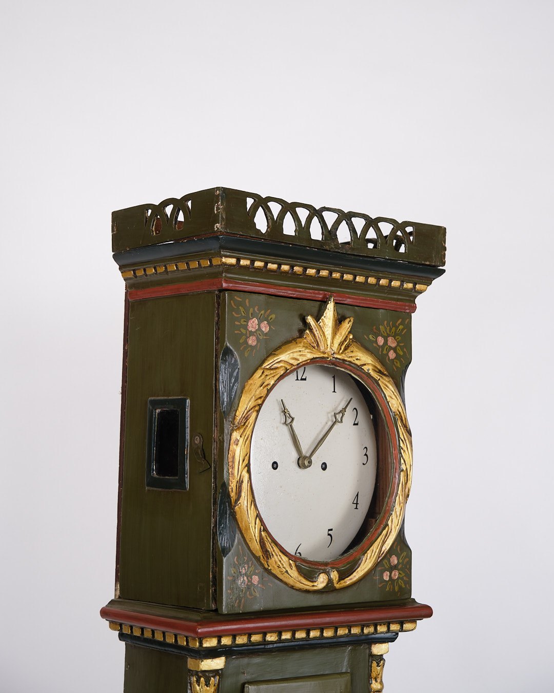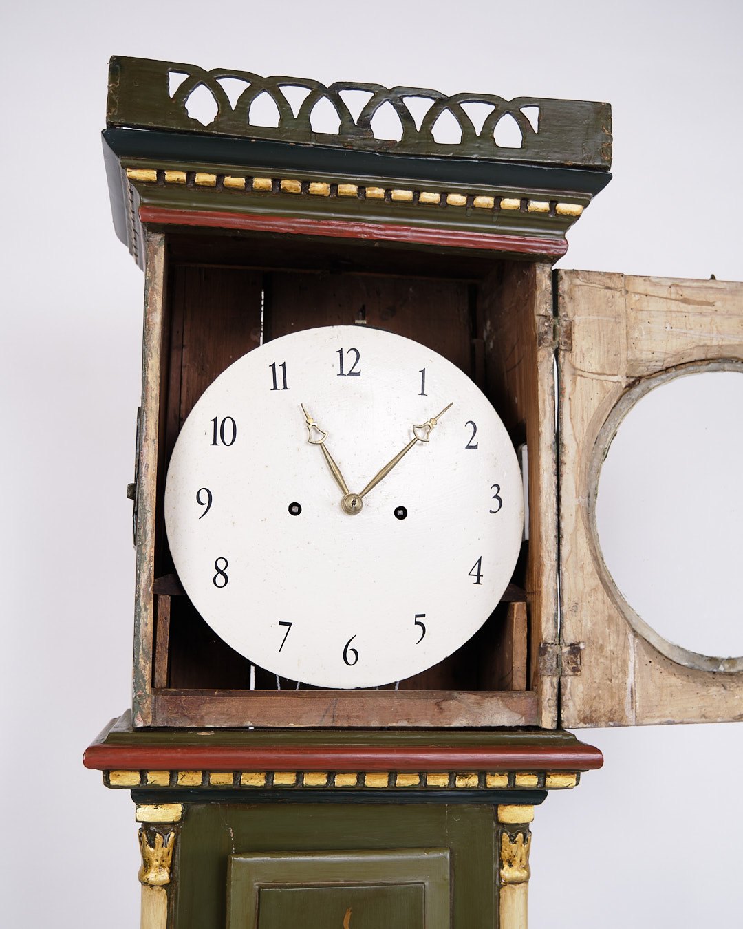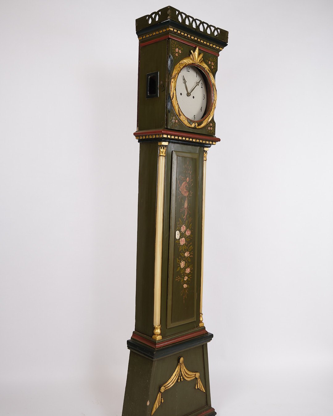 Antique Bornholm clock / grandfather clock from the 1840s. Painted with hand-painted decoration.— Period: 1840s