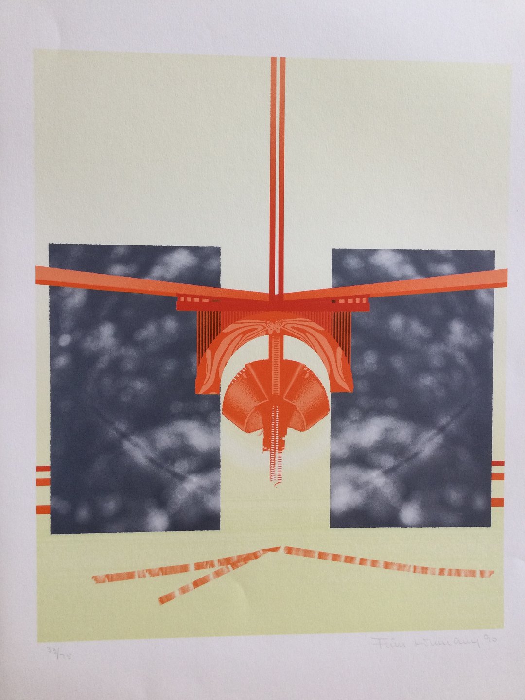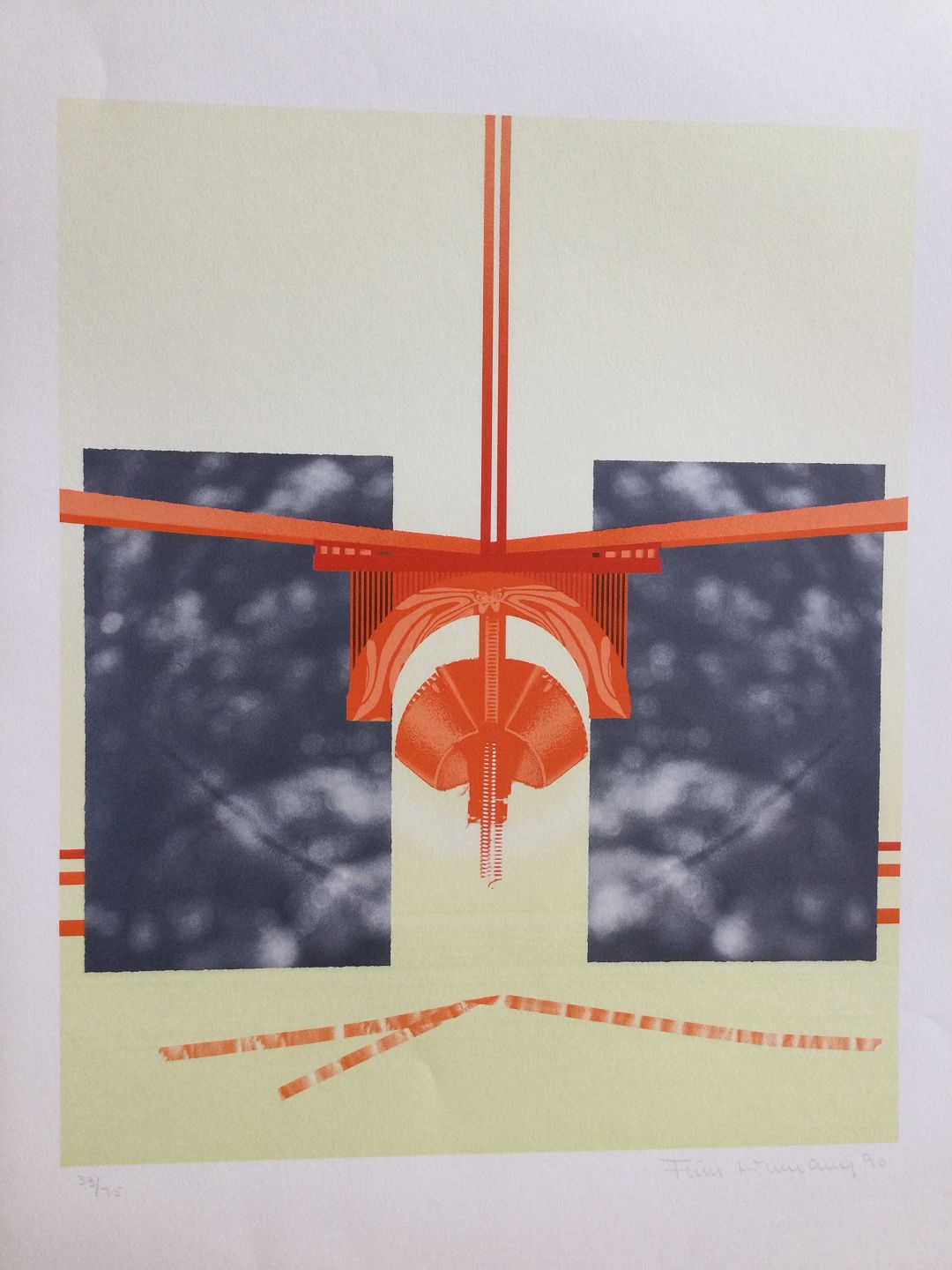 Farvelitografi af Finn Lohmann - Komposition 1990