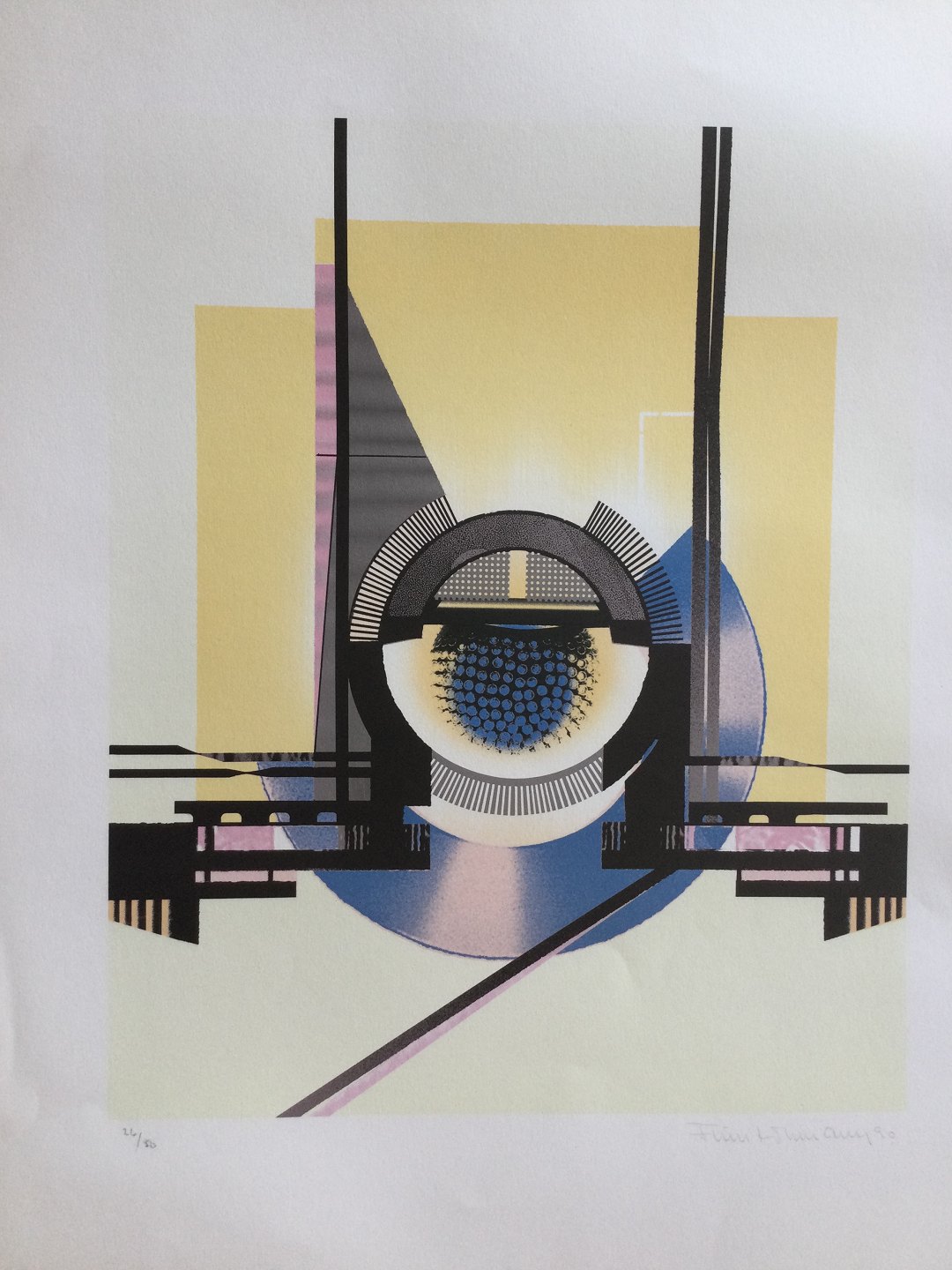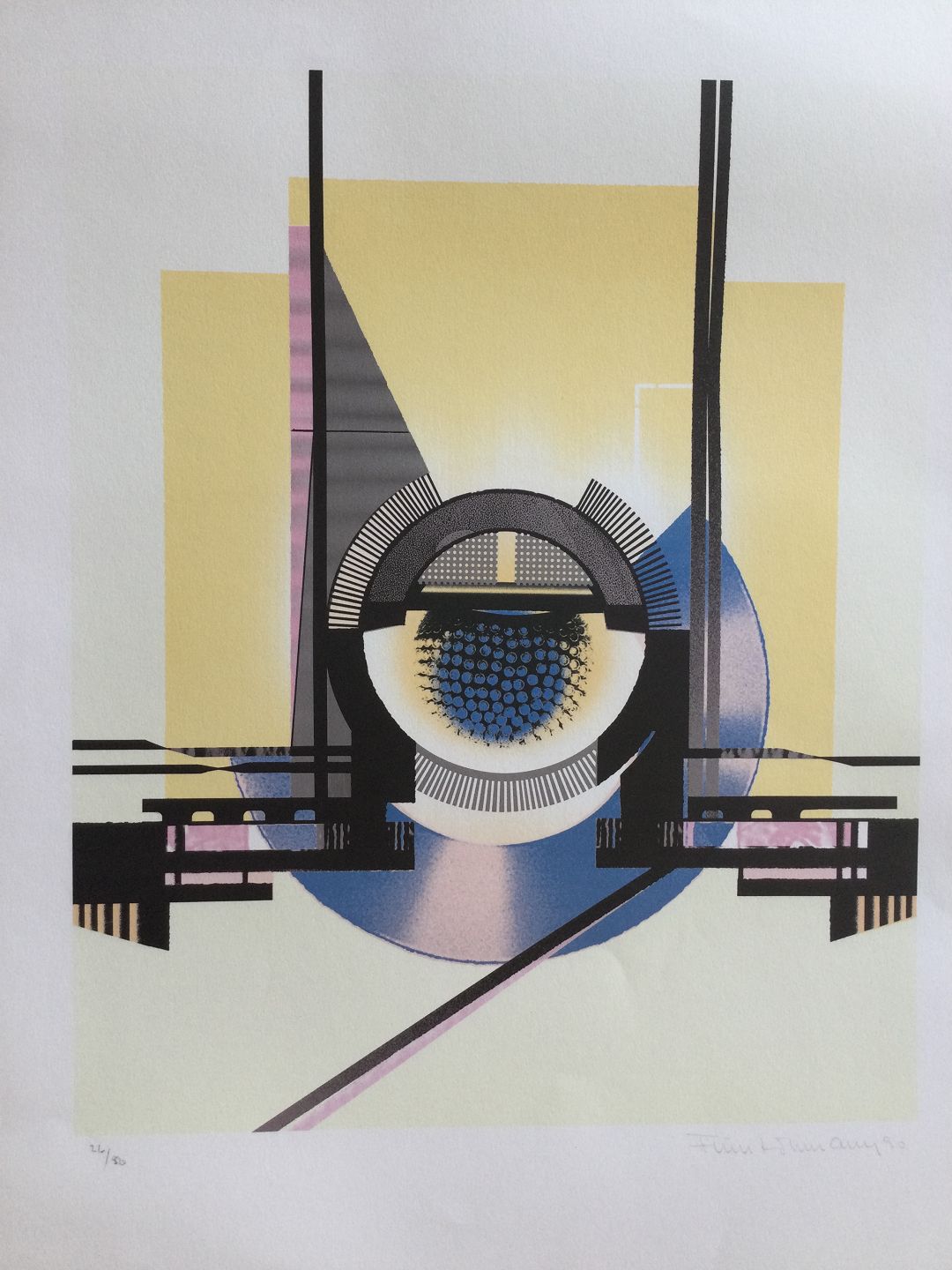 Farvelitografi af Finn Lohmann - Komposition 1990