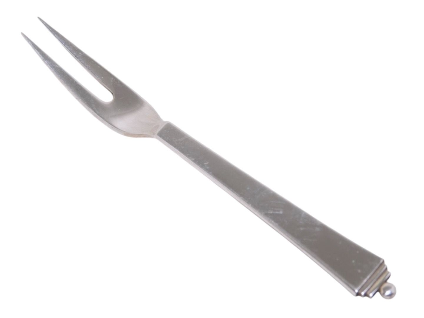 Georg Jensen Pyramid sterling silver, small cold meat serving fork.Length 11.4 cm.