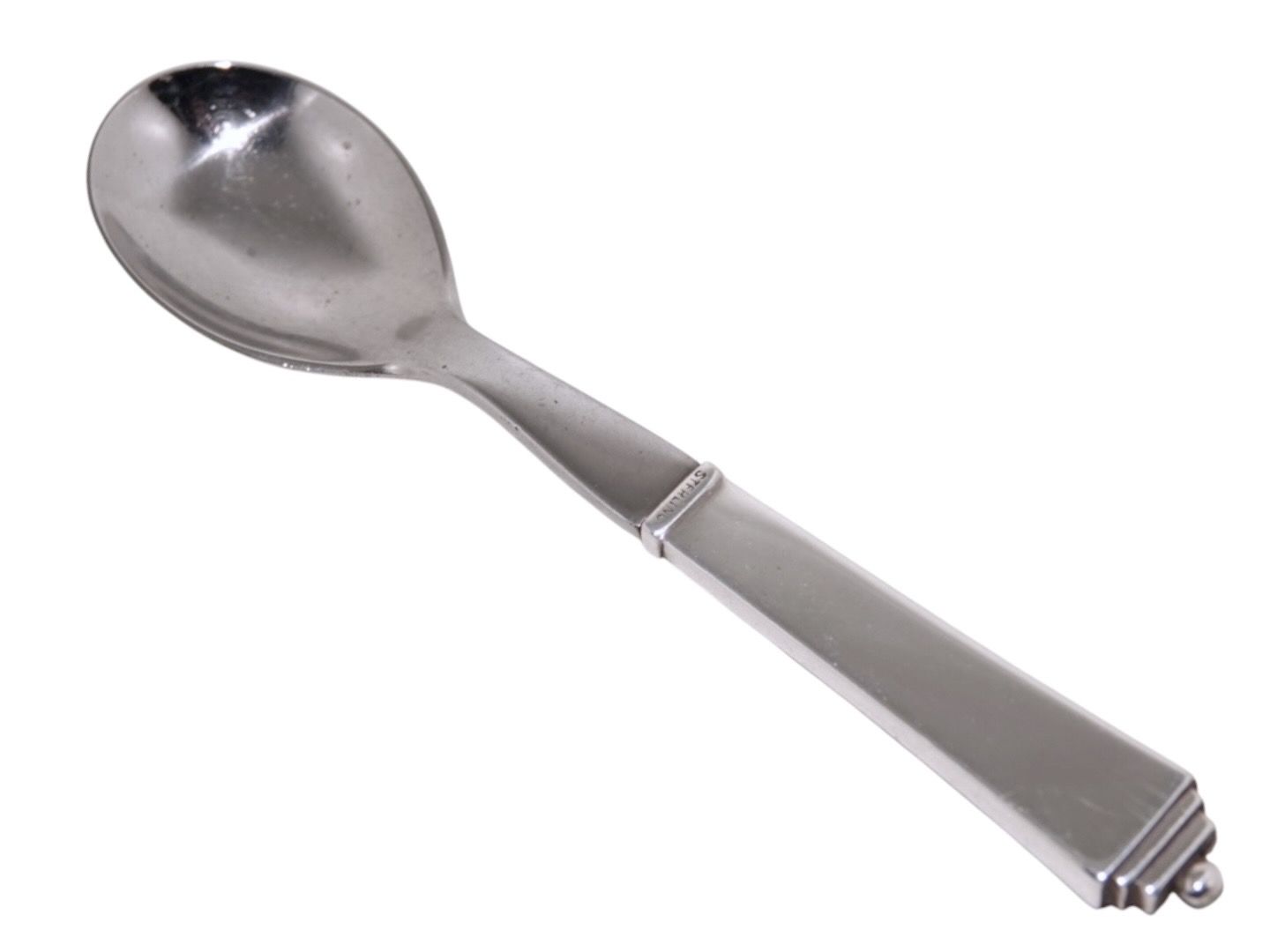 Georg Jensen Pyramid sterling silver and stainless steel, egg spoon.These were produced between 1933 and 1944.