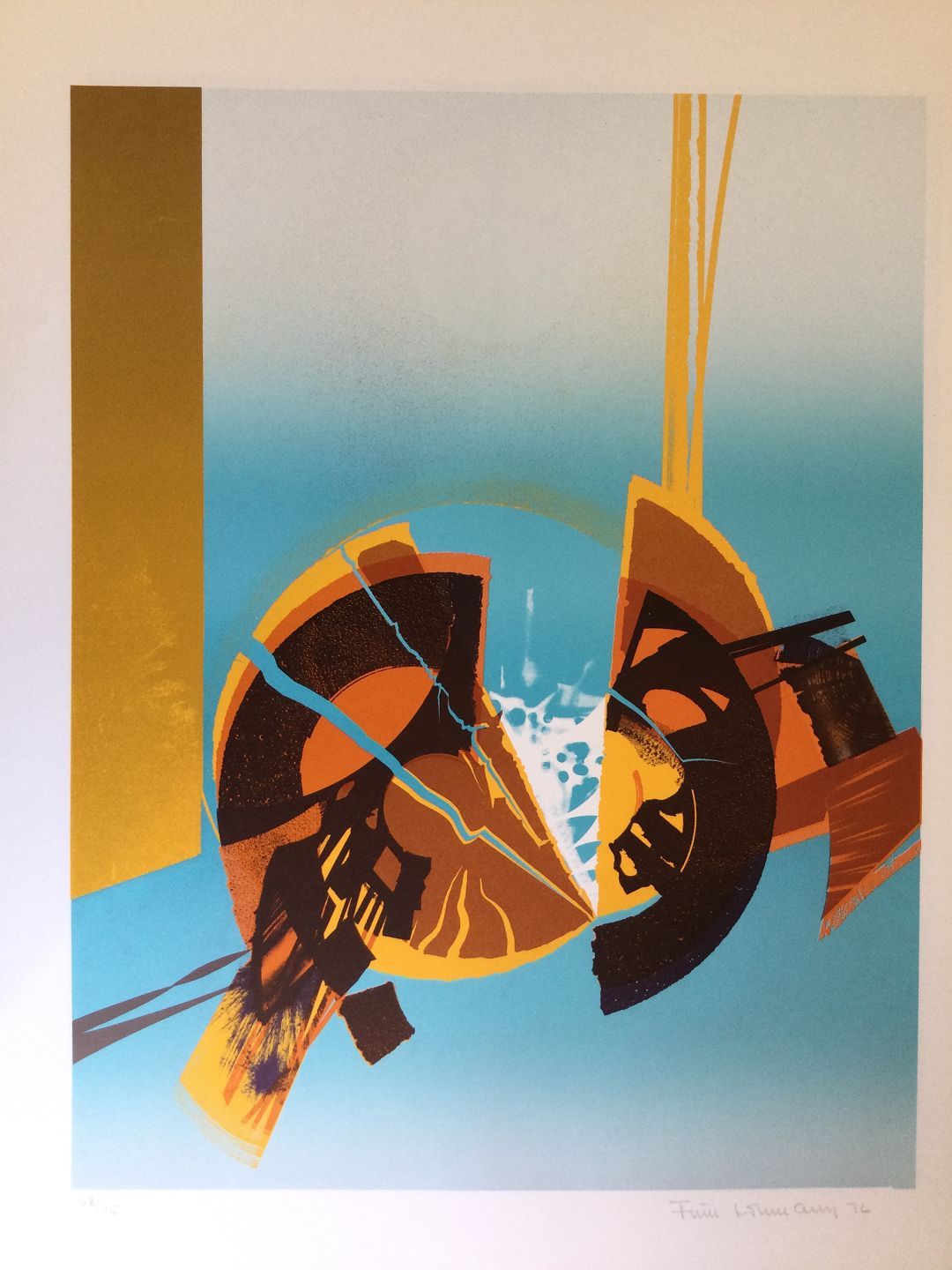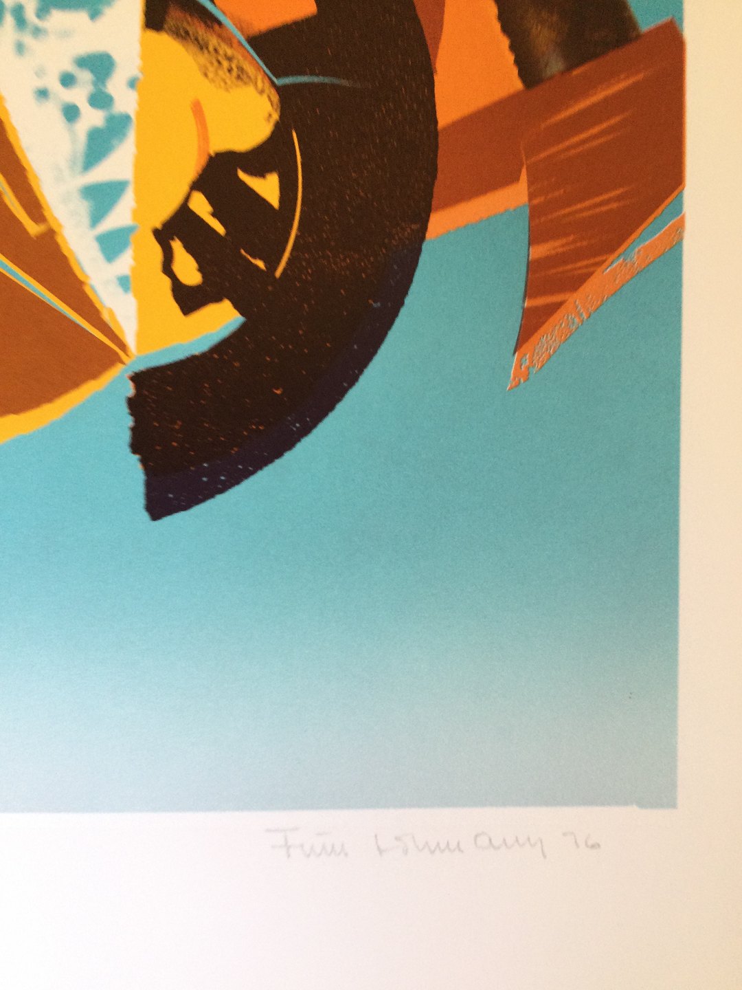 Farvelitografi af Finn Lohmann - Komposition 1976.