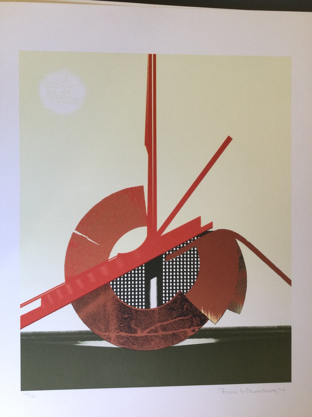 Farvelitografi af Finn Lohmann - Komposition 1996.