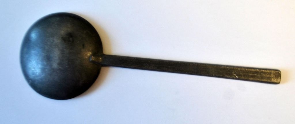 18th century brandy spoon in pewter. Stamped. L.: 17.5 cm.NB: Very rare!