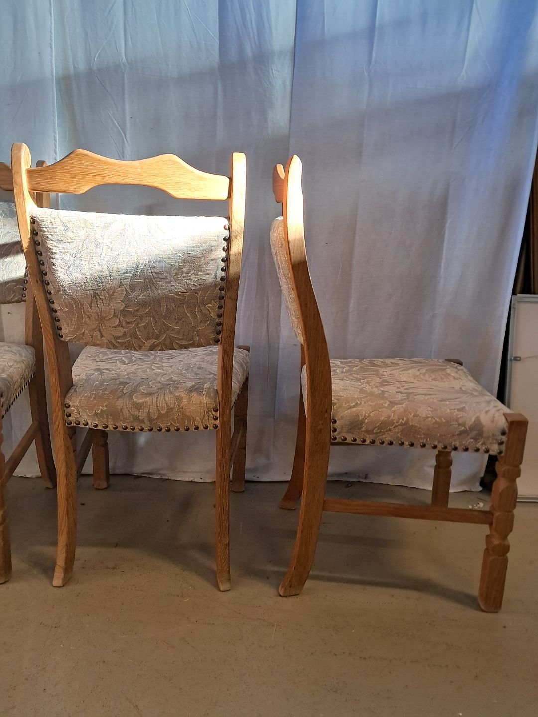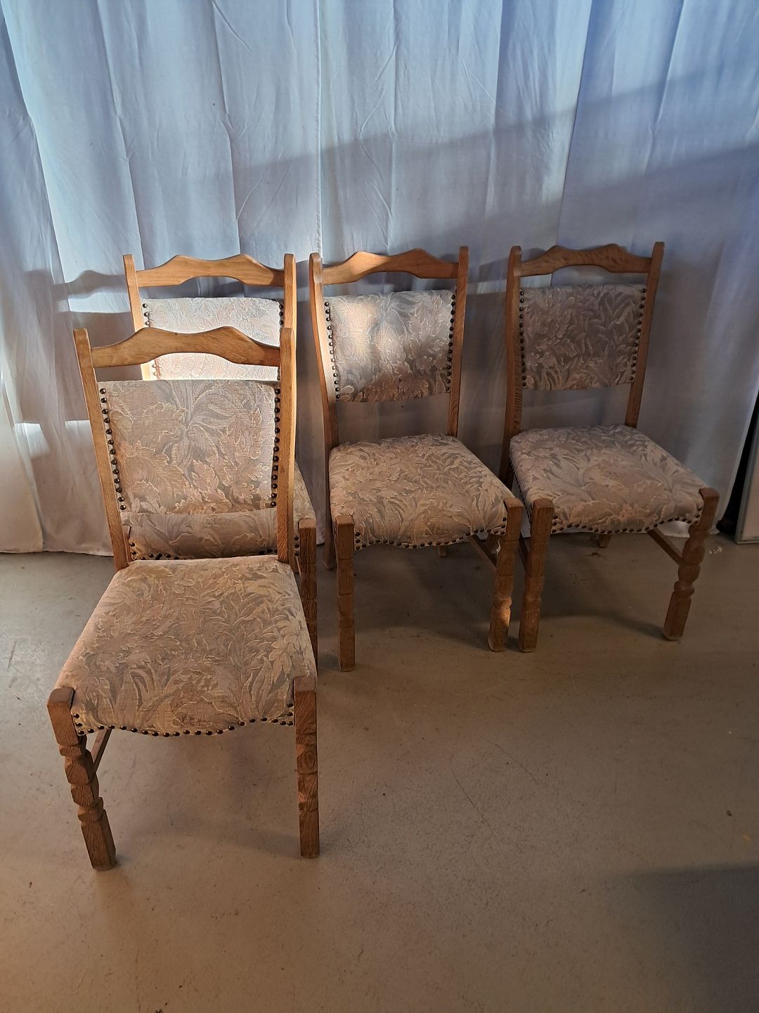 4 Stole i massivt egetræ, fra 1980erne.De har brugsspor.