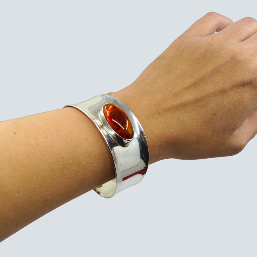 N. E. From silver jewellery.N. E. From; A bangle of sterling silver set with amber.