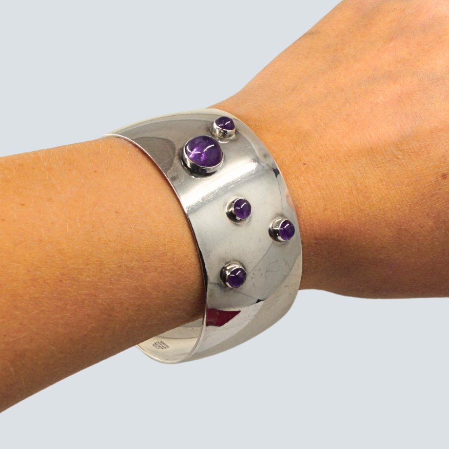 N. E. From silver jewellery.N. E. From; A bangle of sterling silver set with amethyst.