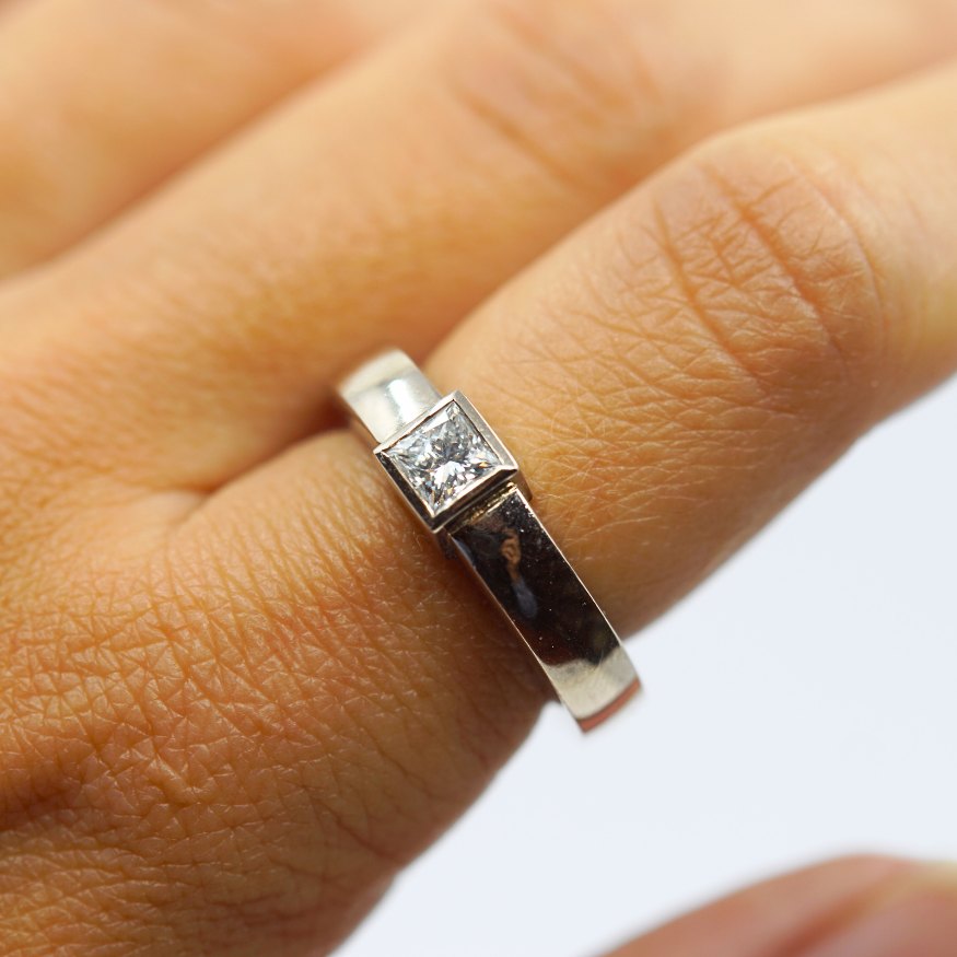 Birgitte Munch; A diamond ring in 14k white gold set with a diamond. Diamond 0,60 ct. Colour: Top Wesselton. Clarity: VVS.Ring size 55.