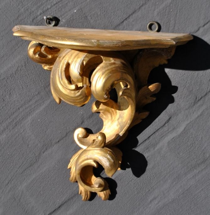 New rococo shelf in gilded wood, 19th century. H.: 26 cm. W.: 24.5 cm. D.: 14.5 cm.Item number: 28292
