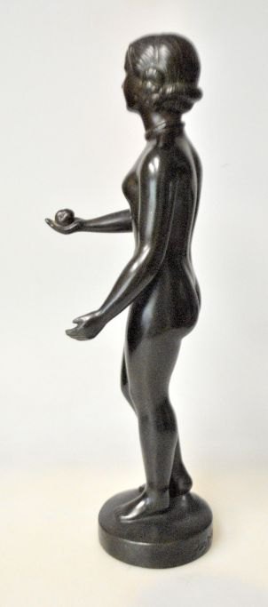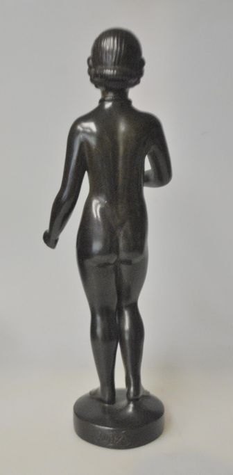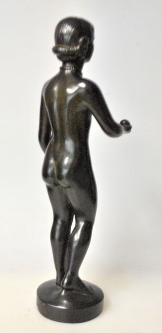 Andersen, Just (1884 - 1943) Denmark: Figurine, Ydun. No. D 2307. Patinated disco metal. Signed. H: 29 cm First produced 1942. According to Norsdic mythology, she was the goddess of eternal youth and guardian of the rejuvenating golden apples. Perfect condition!Item number: 28295