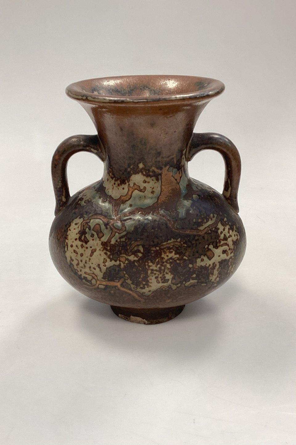 Royal Copenhagen Stoneware Vase with Two Handles No. 3220 by Bode Willumsen.1st sortiment. Appears with a chip on the foot edge (see picture)