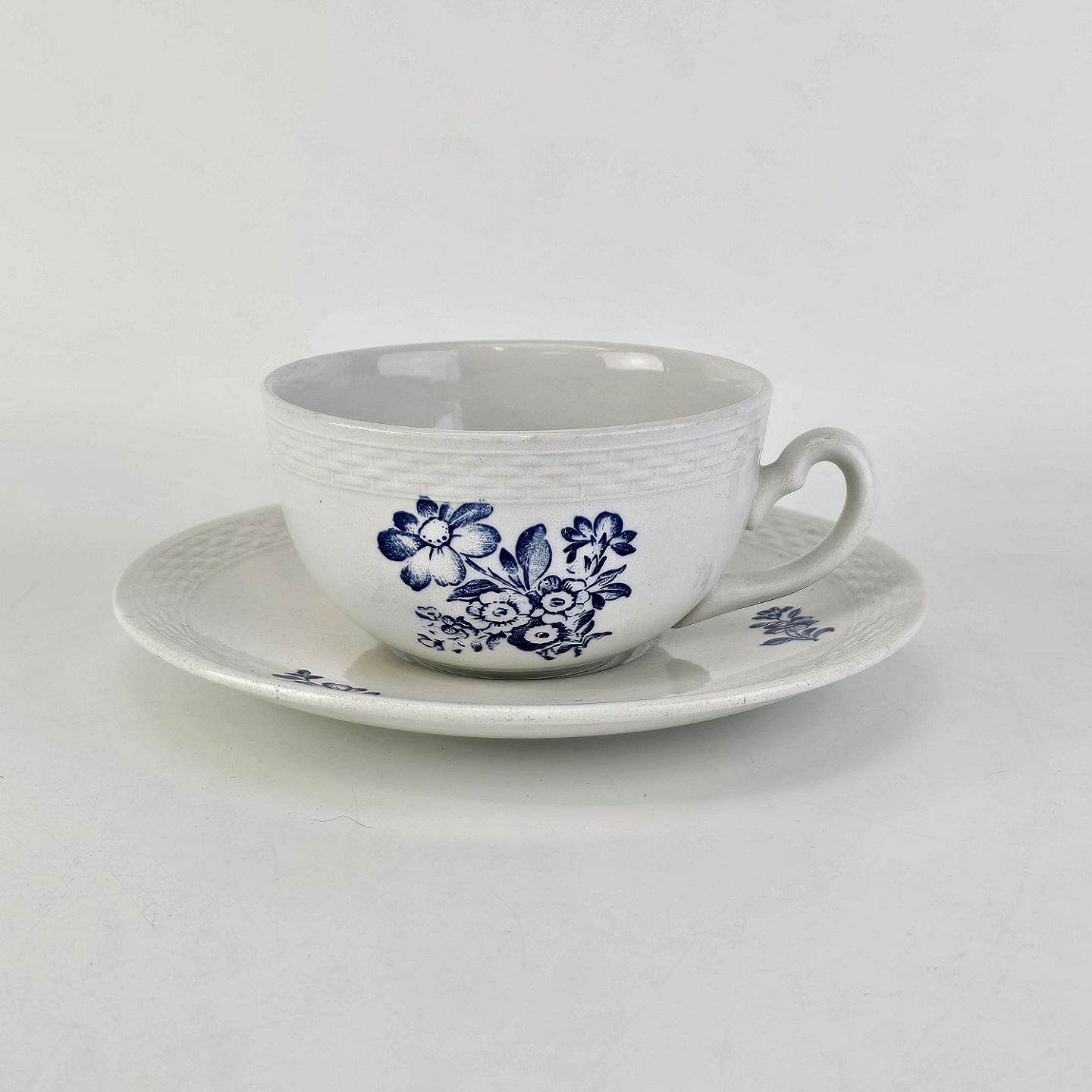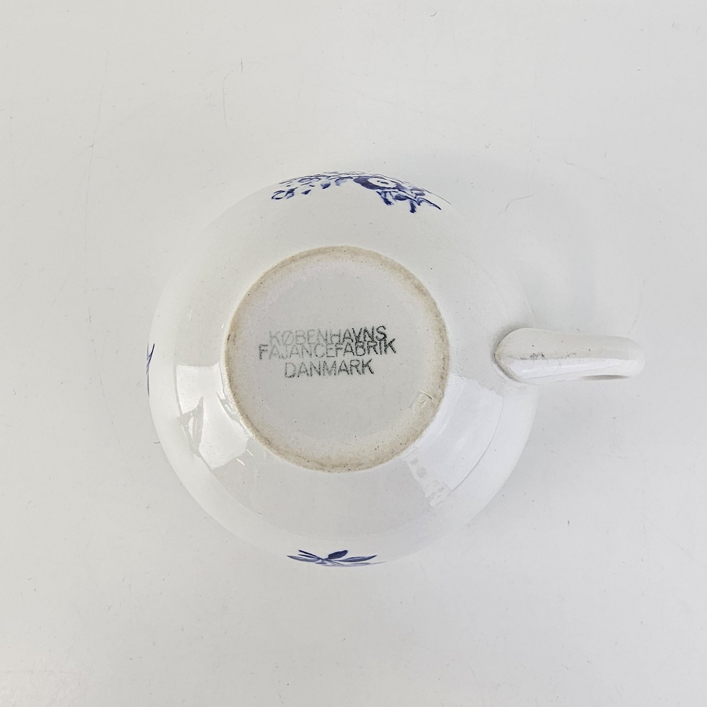 Kop og underkop i fajance fra stellet Blå blomstFormgiver Christian Joachim