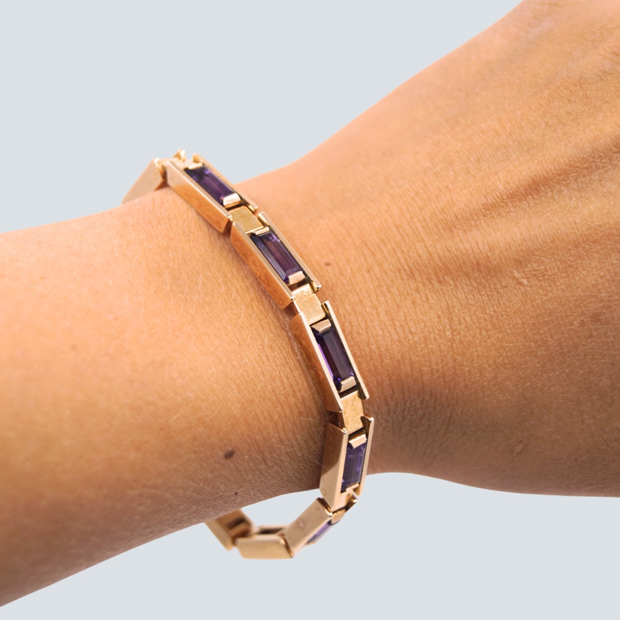 Sven Haugaard jewellery.Sven Haugaard; Bracelet in 14k gold set with amthyst.