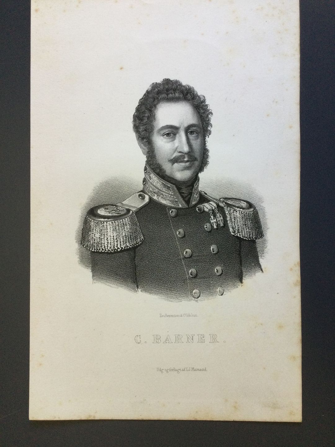 Litografi af Em. Bærentzen - Portræt af Generalmajor og Kammerherre Carl von Barner.