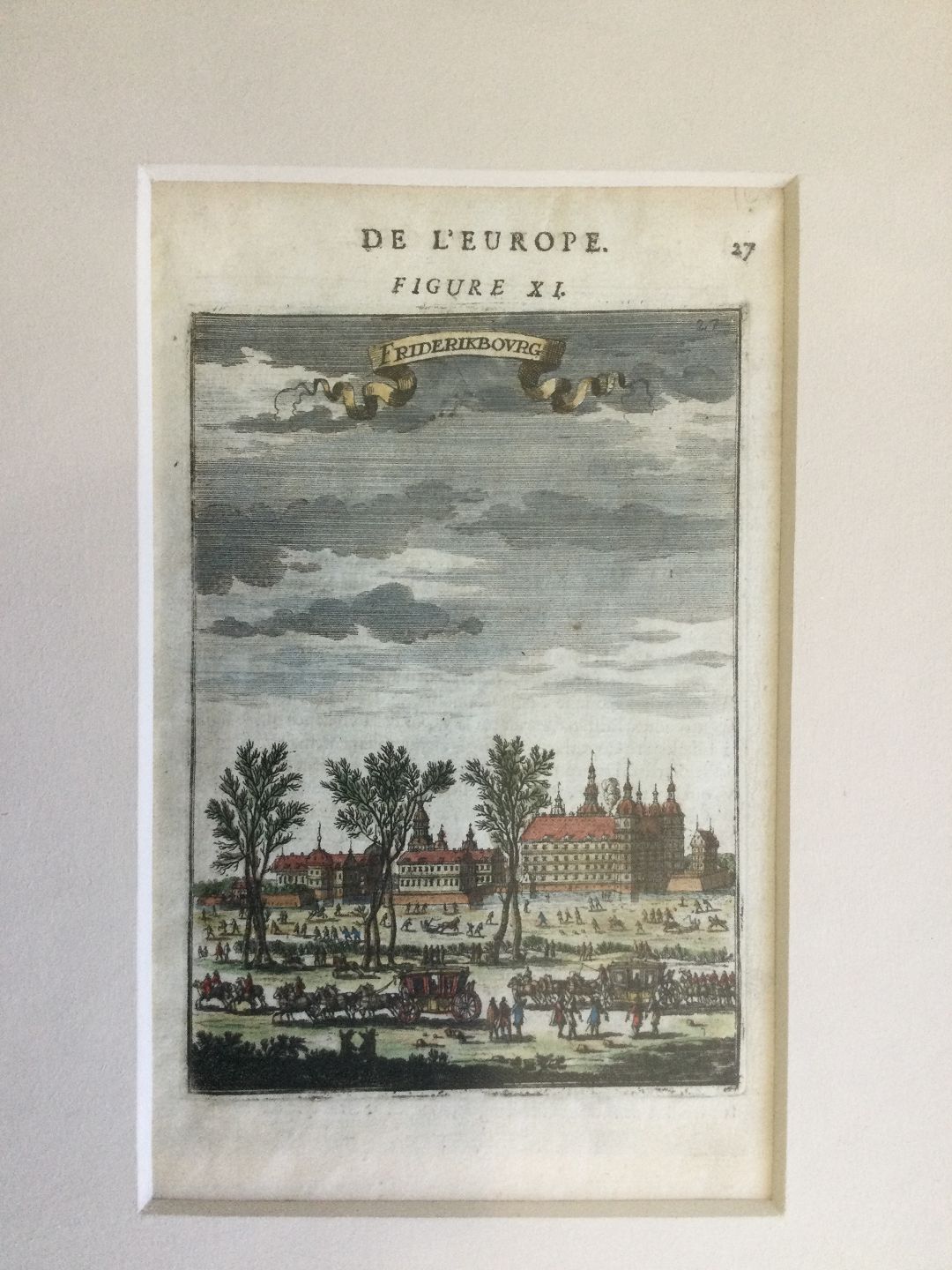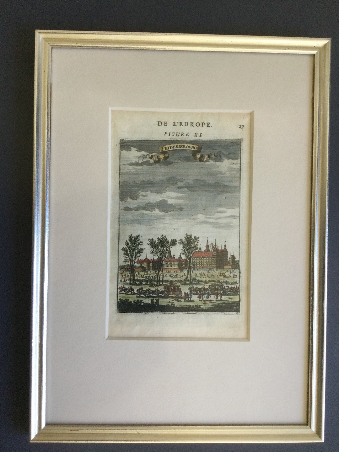 Koloreret kobberstik af Alain Manesson Mallet 1683 Frederiksborg Slot i Hillerød.