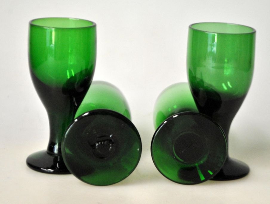 Holmegaard green schnapps glass, Denmark. H: 7.5 cm.NB: only sold as a set.