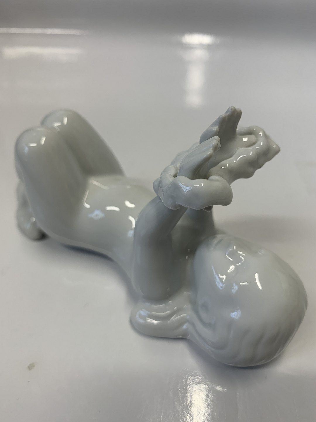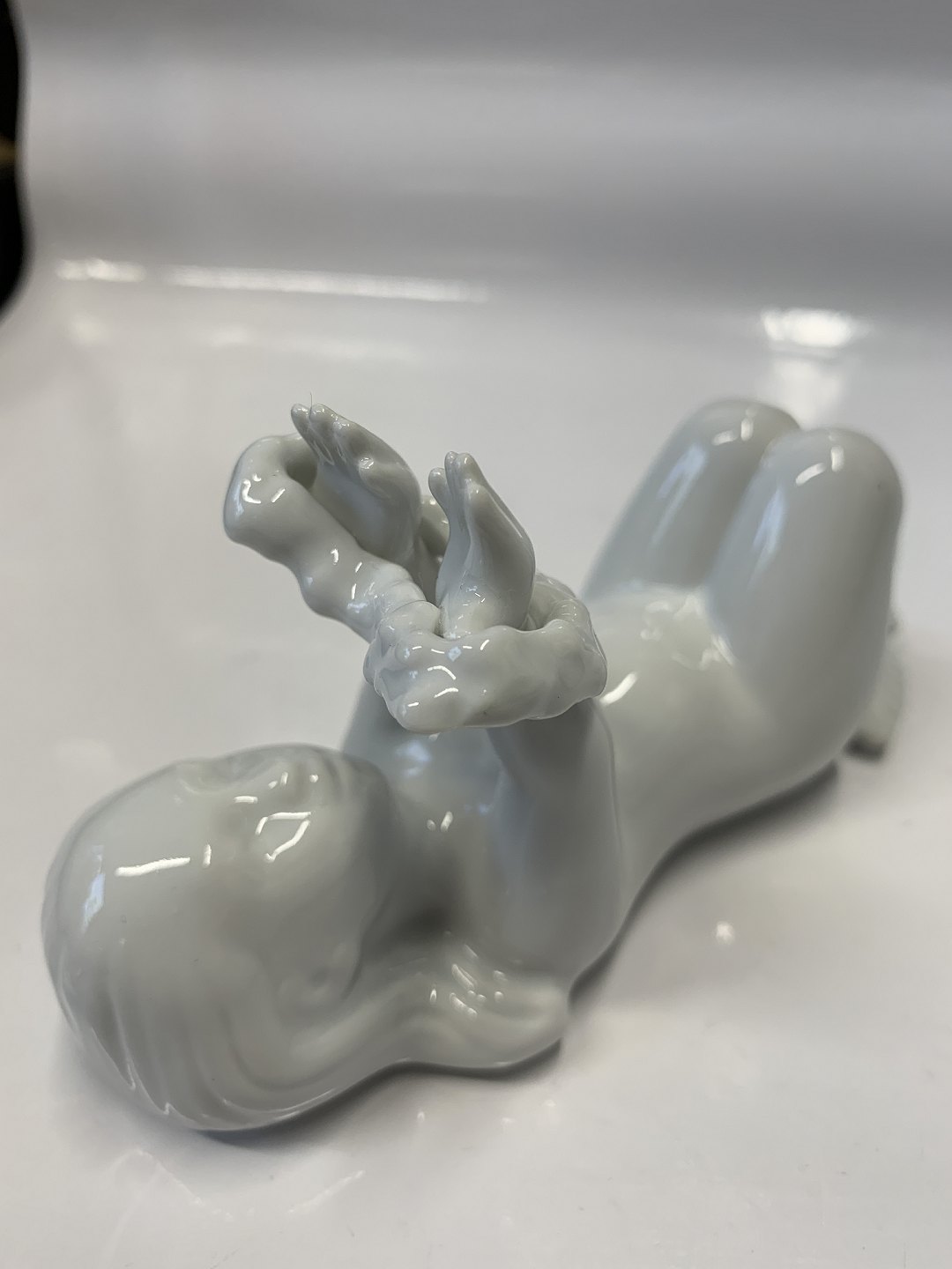 Bing & Grøndahl Blanc de chine, Hav børn, Hav pige liggende.Design: Ebbe Sadolin / Svend Jespersen