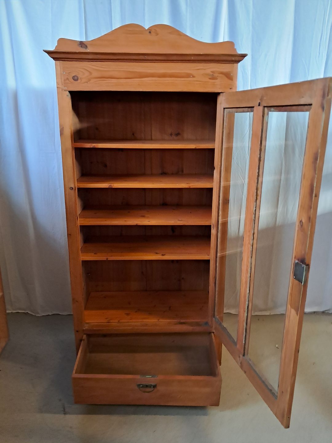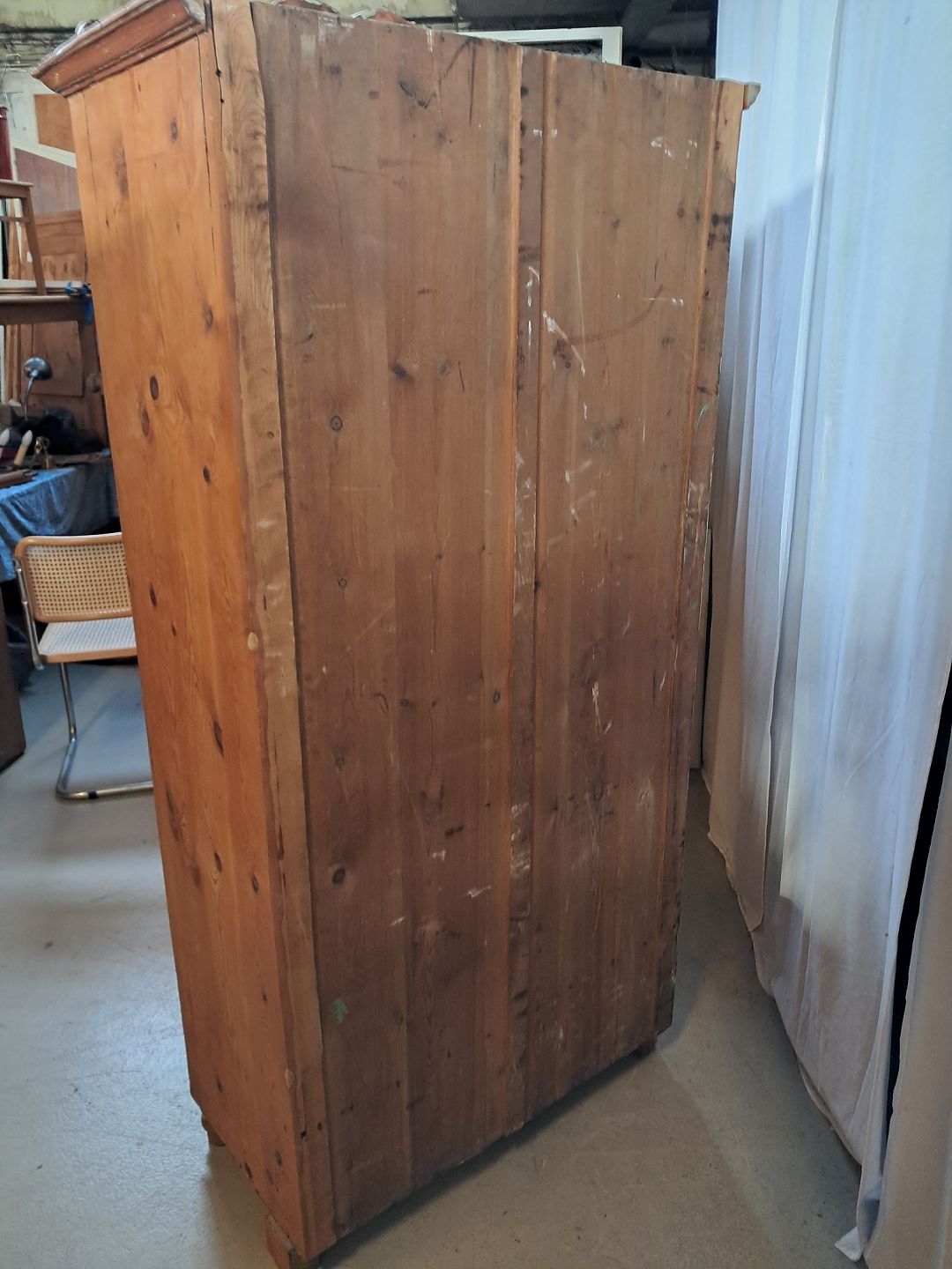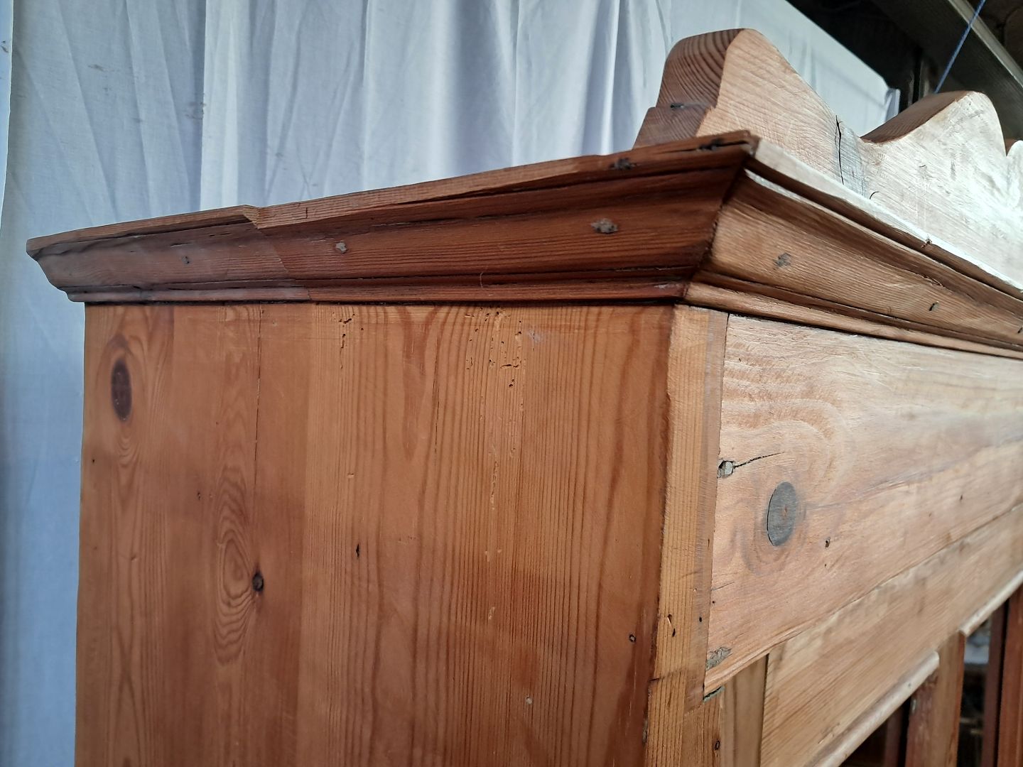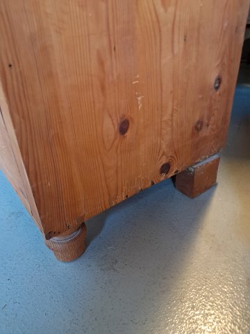 Skab i massivt fyrretræ, fra 1910erne.Det har brugsspor og defekte/mangler lister.