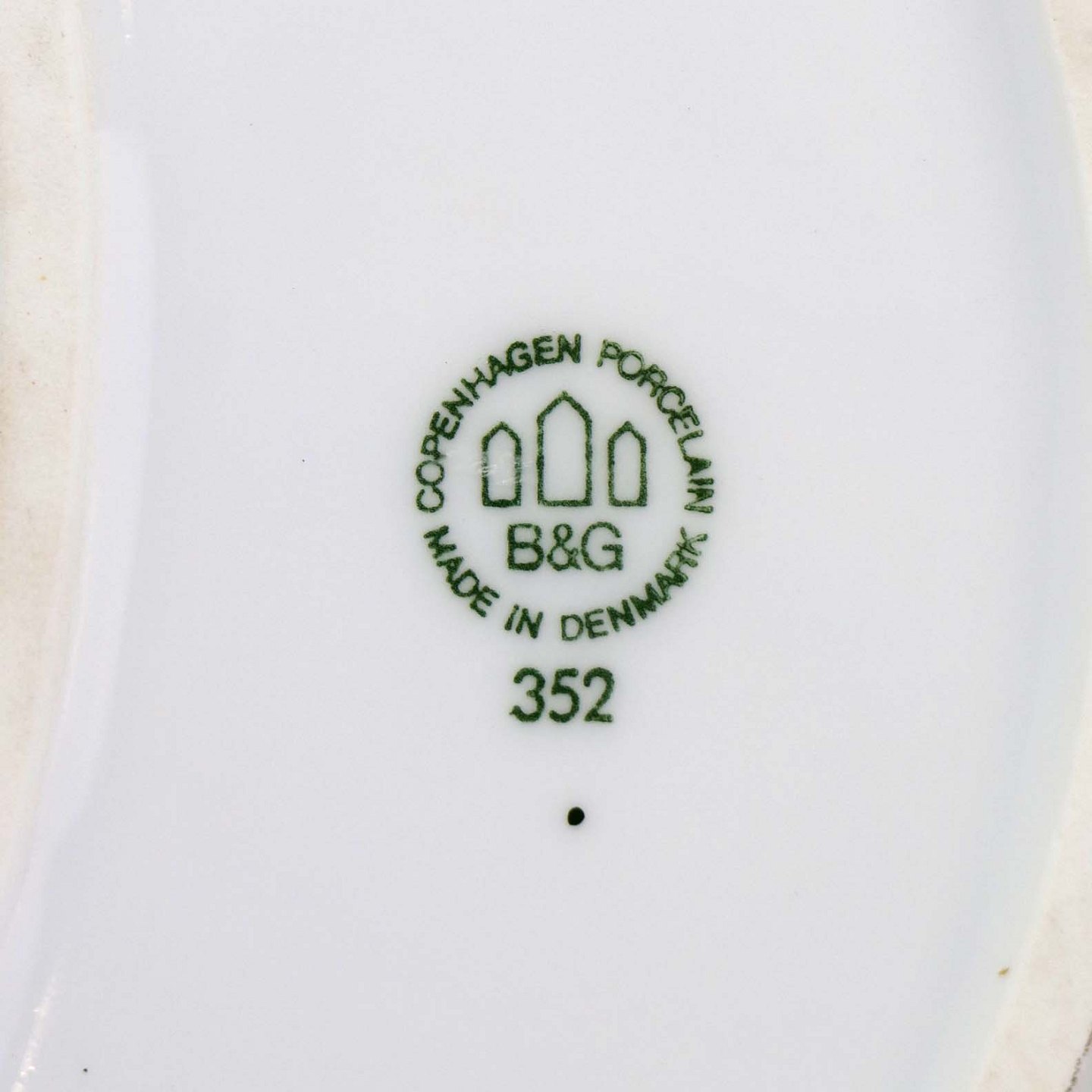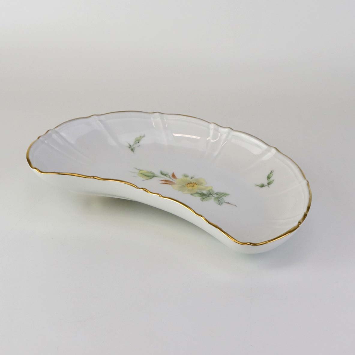 Halvmåneformet fad i porcelæn fra stellet Klitrose. Nr. 352Producent Bing & Grøndahl
