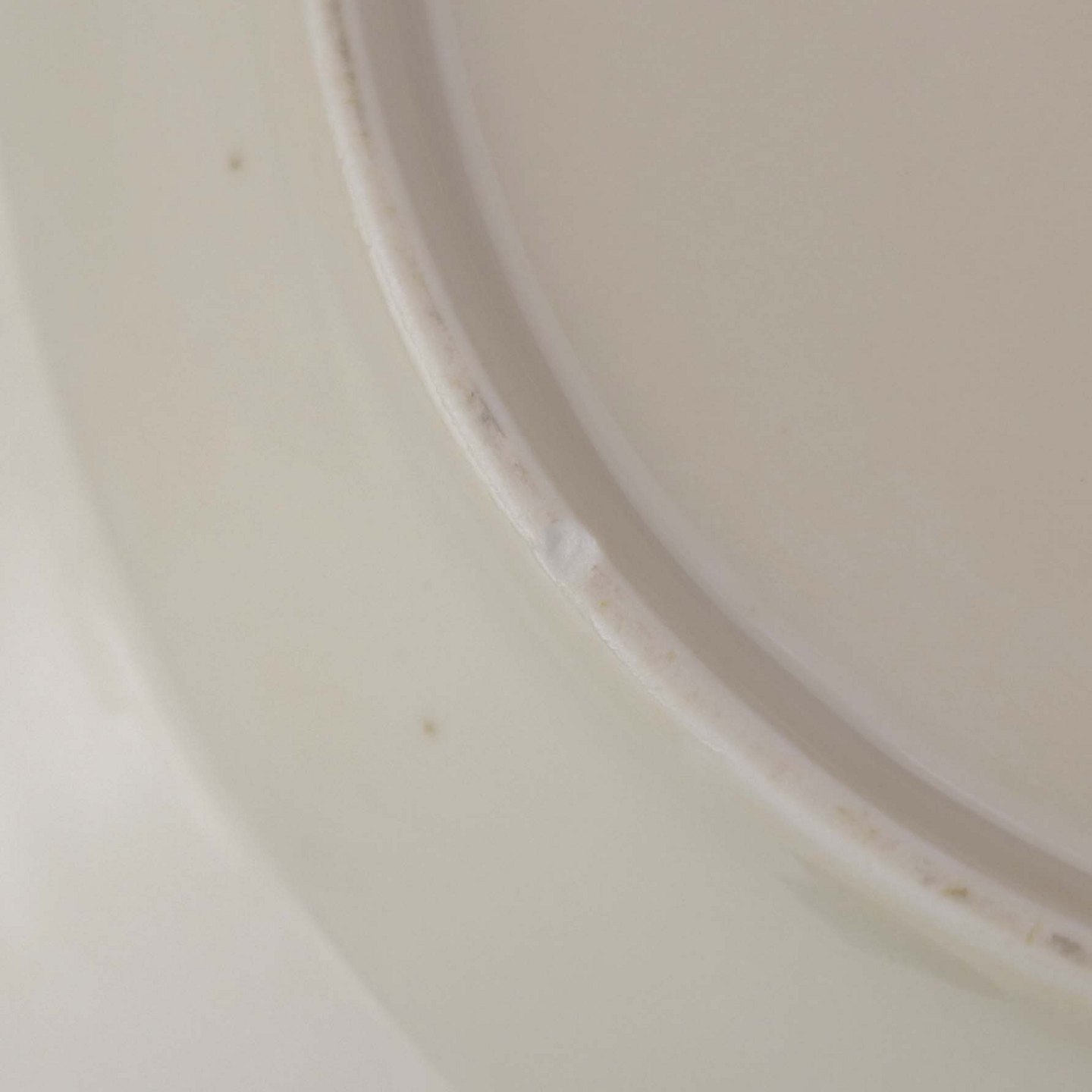 Fremstår med minimalt nøk ved bundkanten, mindre brune pletter under glasuren samt ujævnhed enkelte steder ved kantstregen.